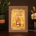 Autumn Gnome Wooden Cross Sunflower Butterfly - Fall In Love With Jesus Frame Lamp Art - Christian Night Light