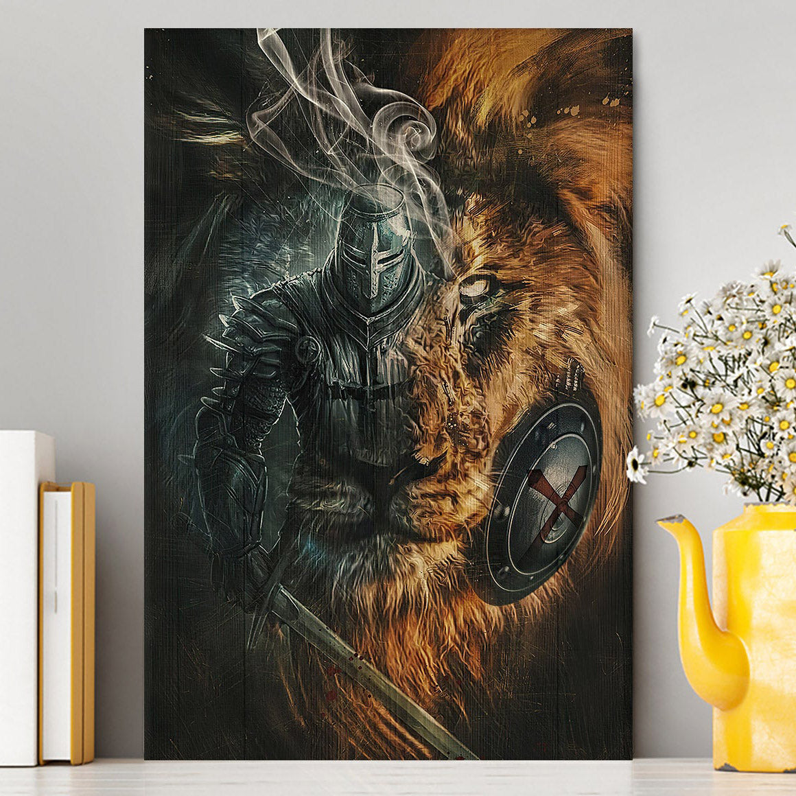 Awesome Warrior And Lion Canvas Wall Art - Christian Home Decor - Religious Art