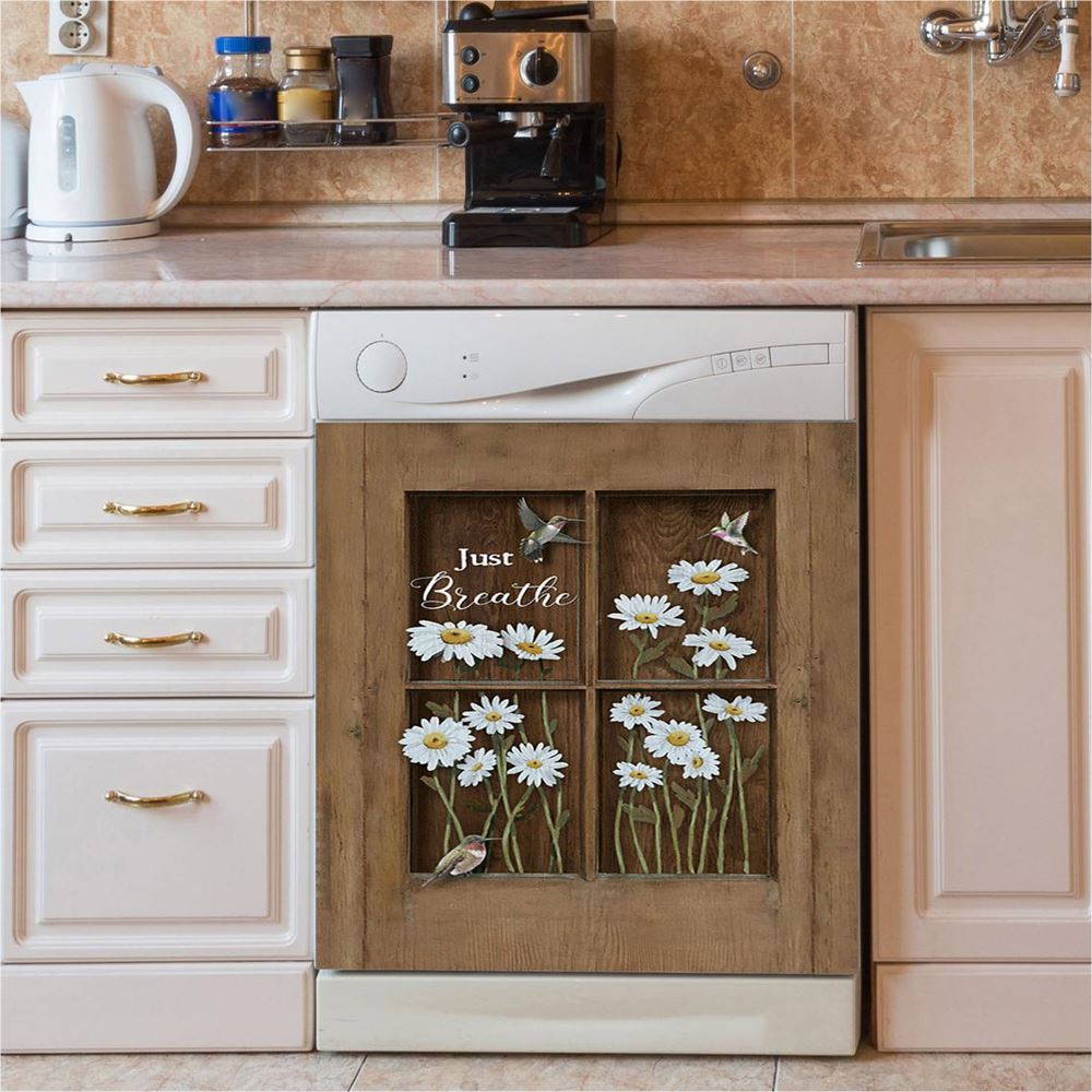 Baby Daisy Flower Hummingbird Just Breathe Dishwasher Cover, Christian Dishwasher Magnet Cover, Bible Verse Kitchen Decor