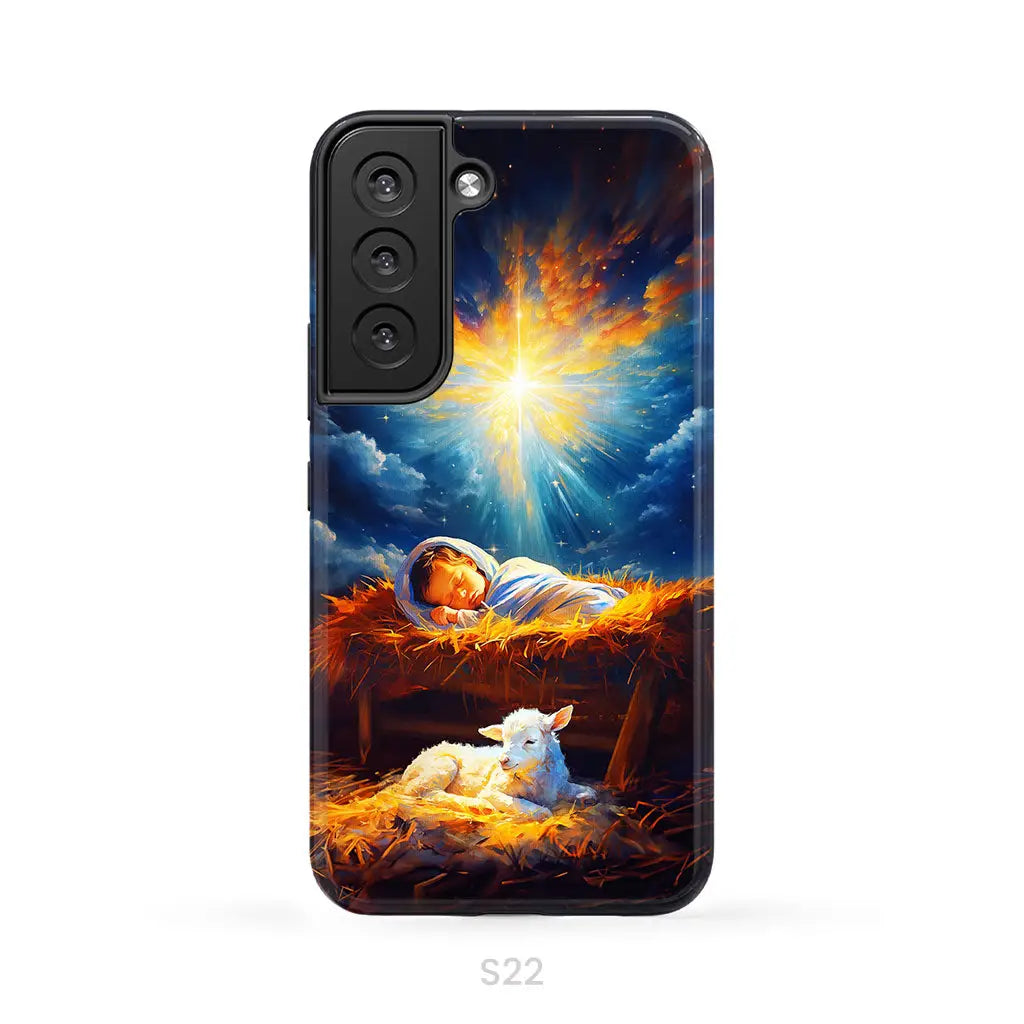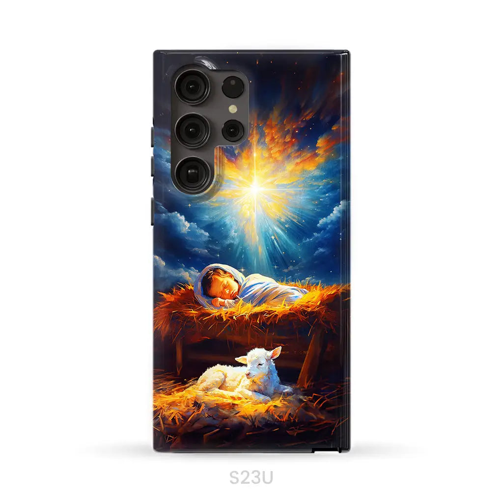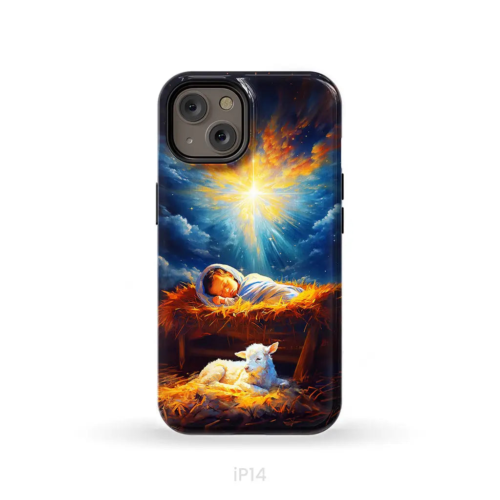 Baby Jesus With A Lamb, Baby Jesus In The Manger, Phone Case