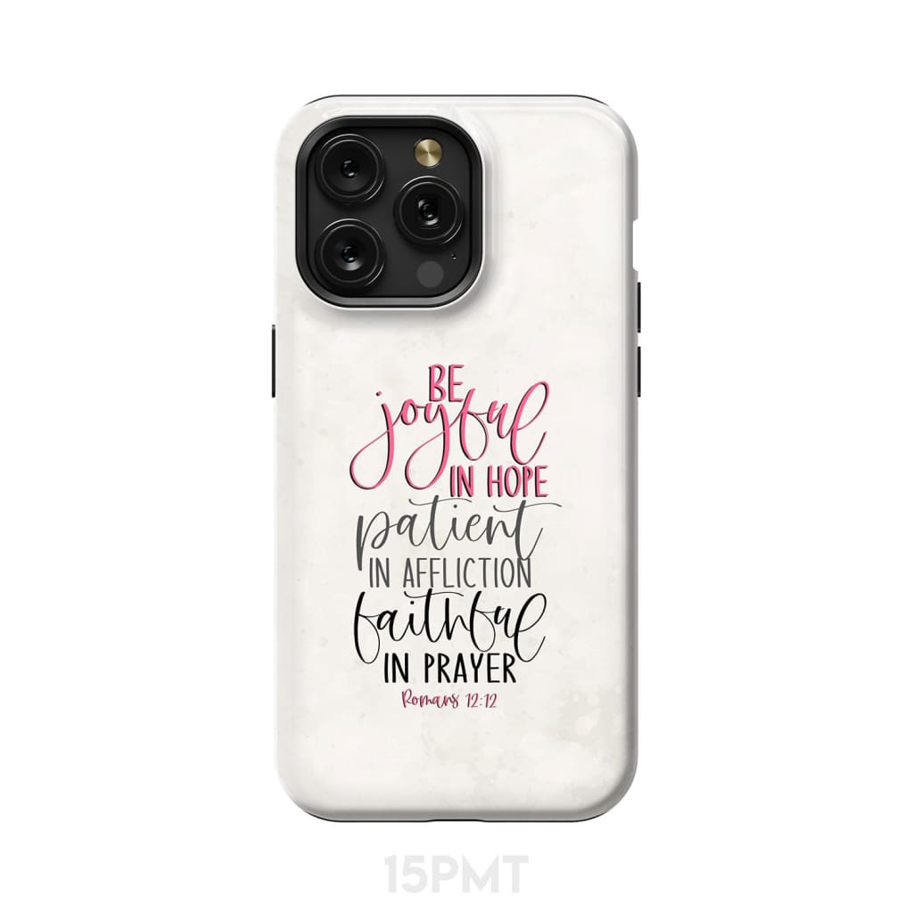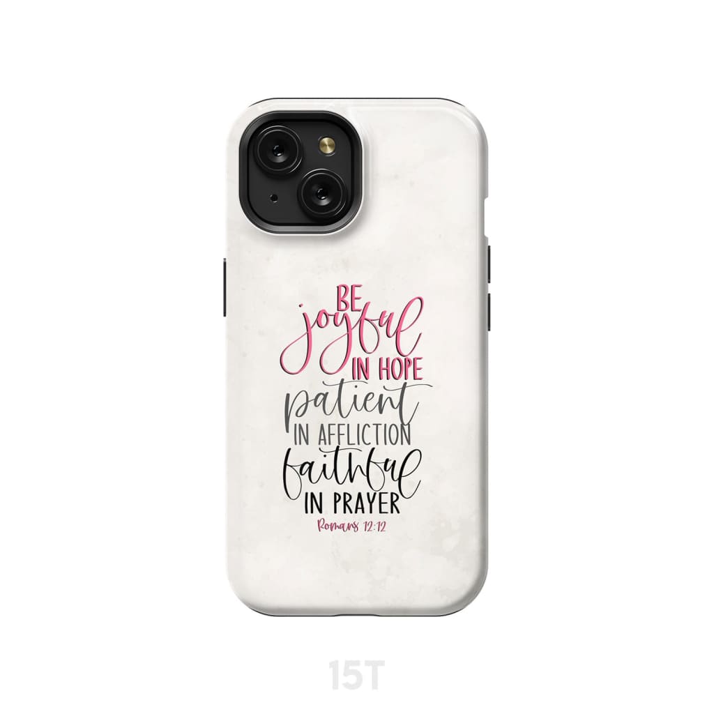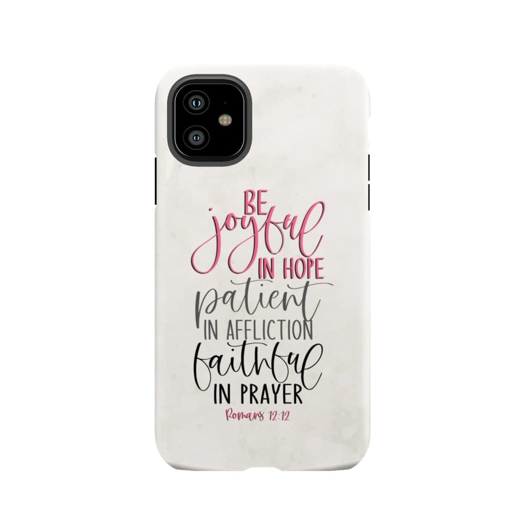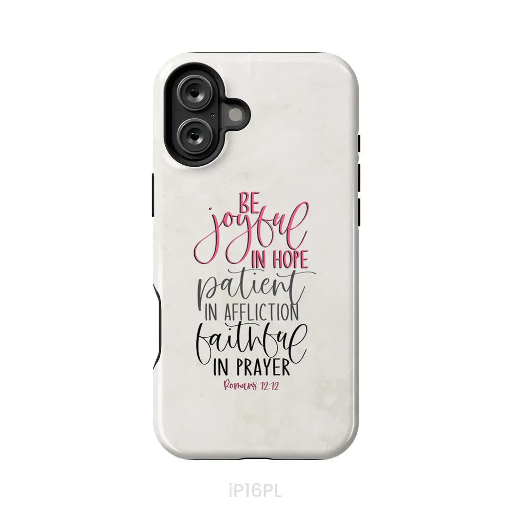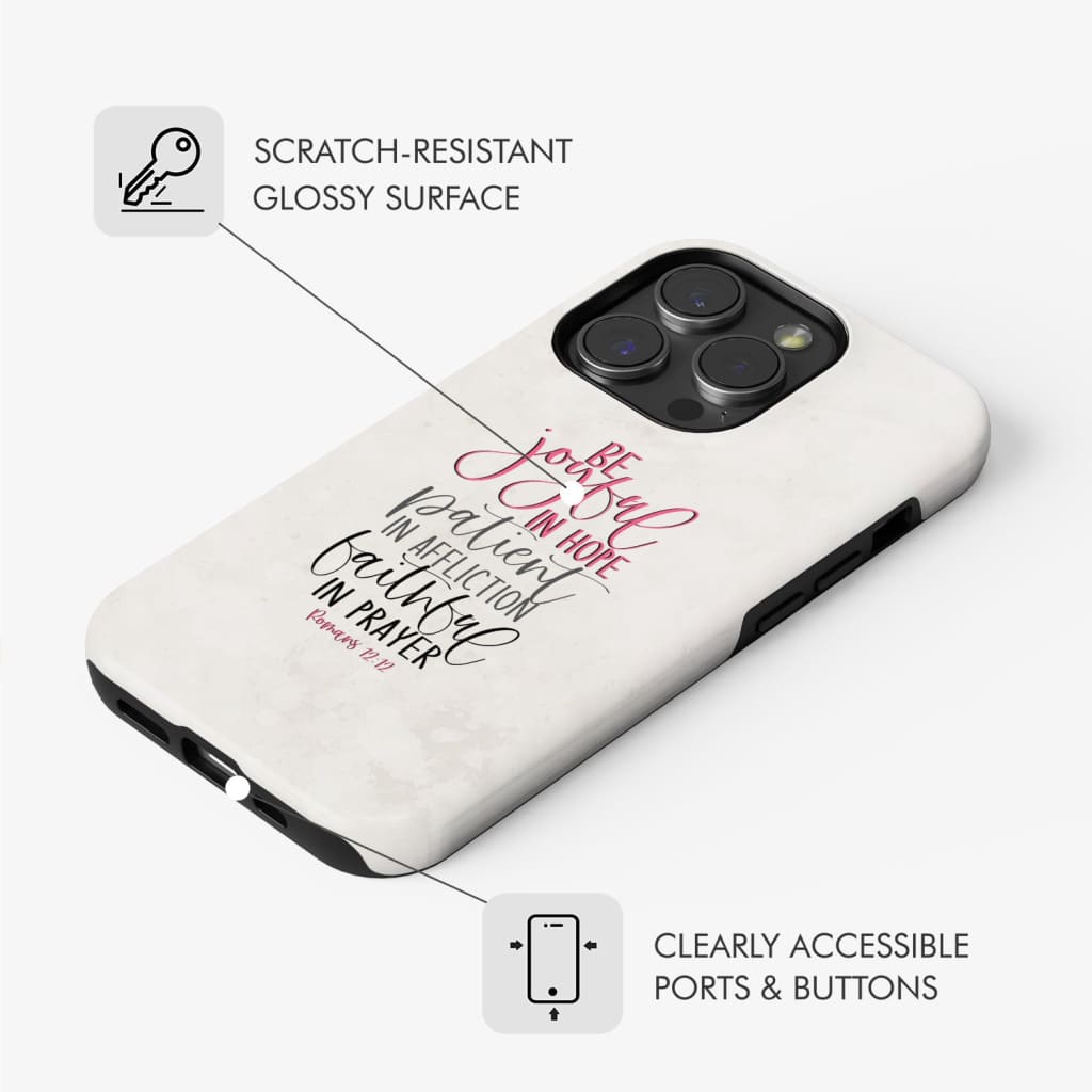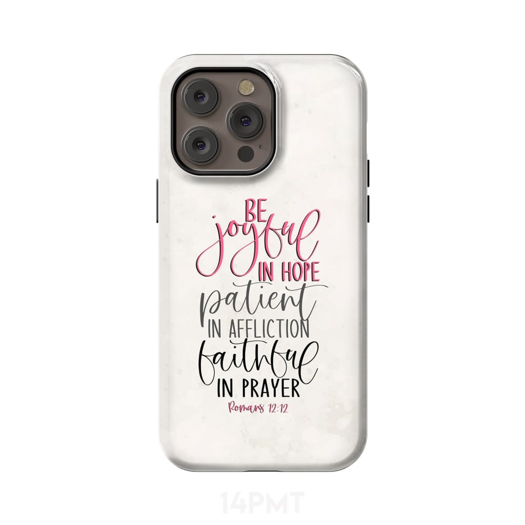 Be joyful in hope patient in affliction faithful in prayer Christian phone case