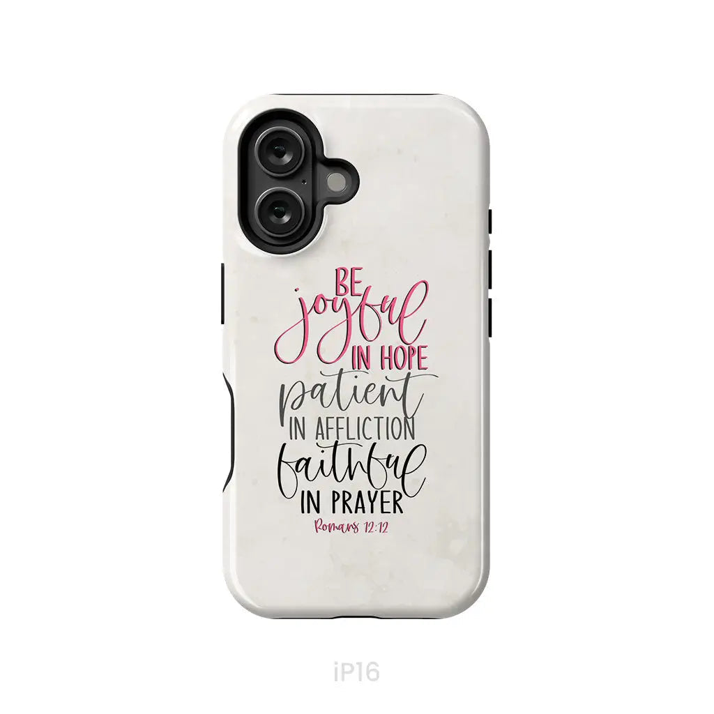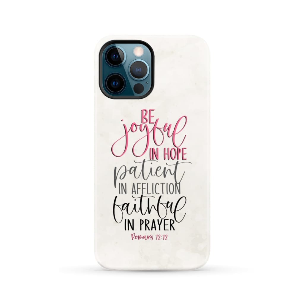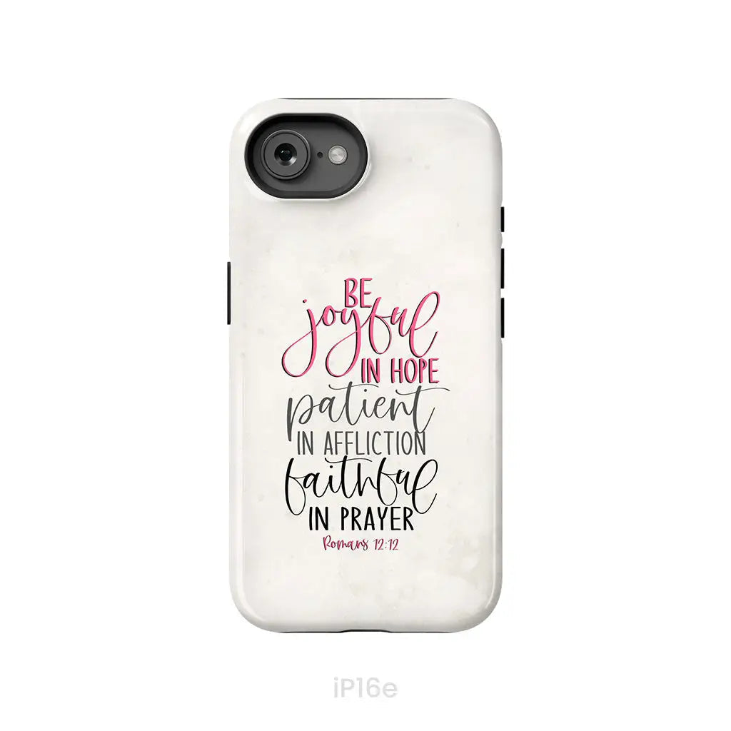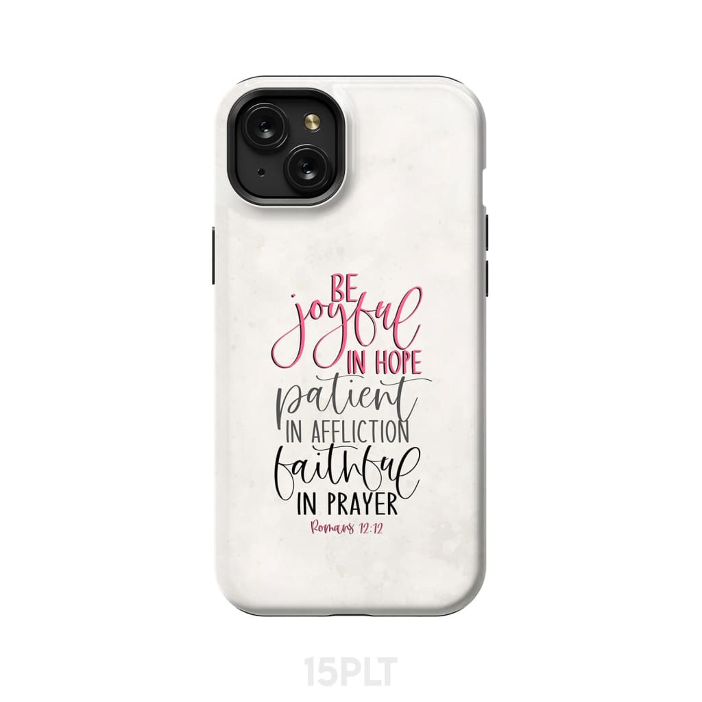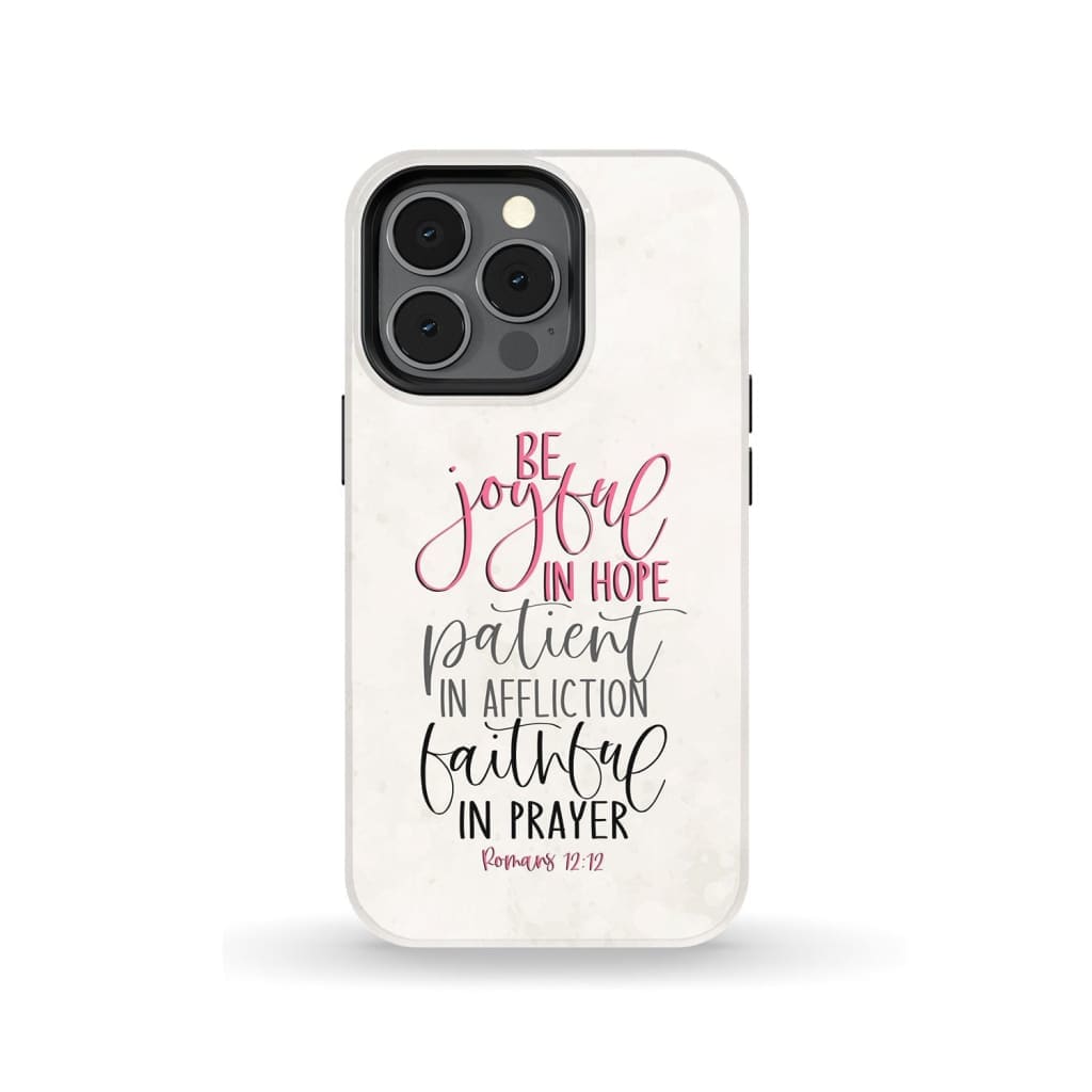 Be joyful in hope patient in affliction faithful in prayer Christian phone case