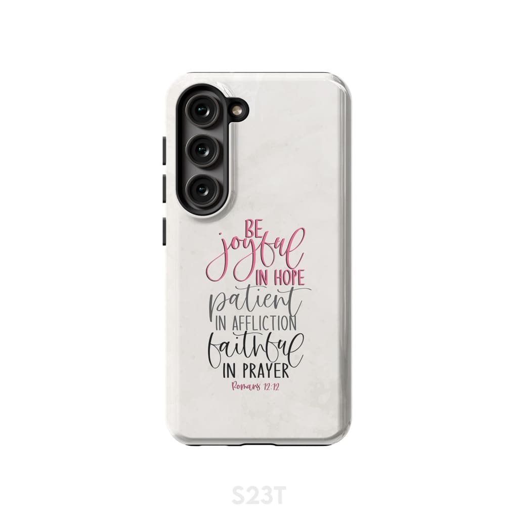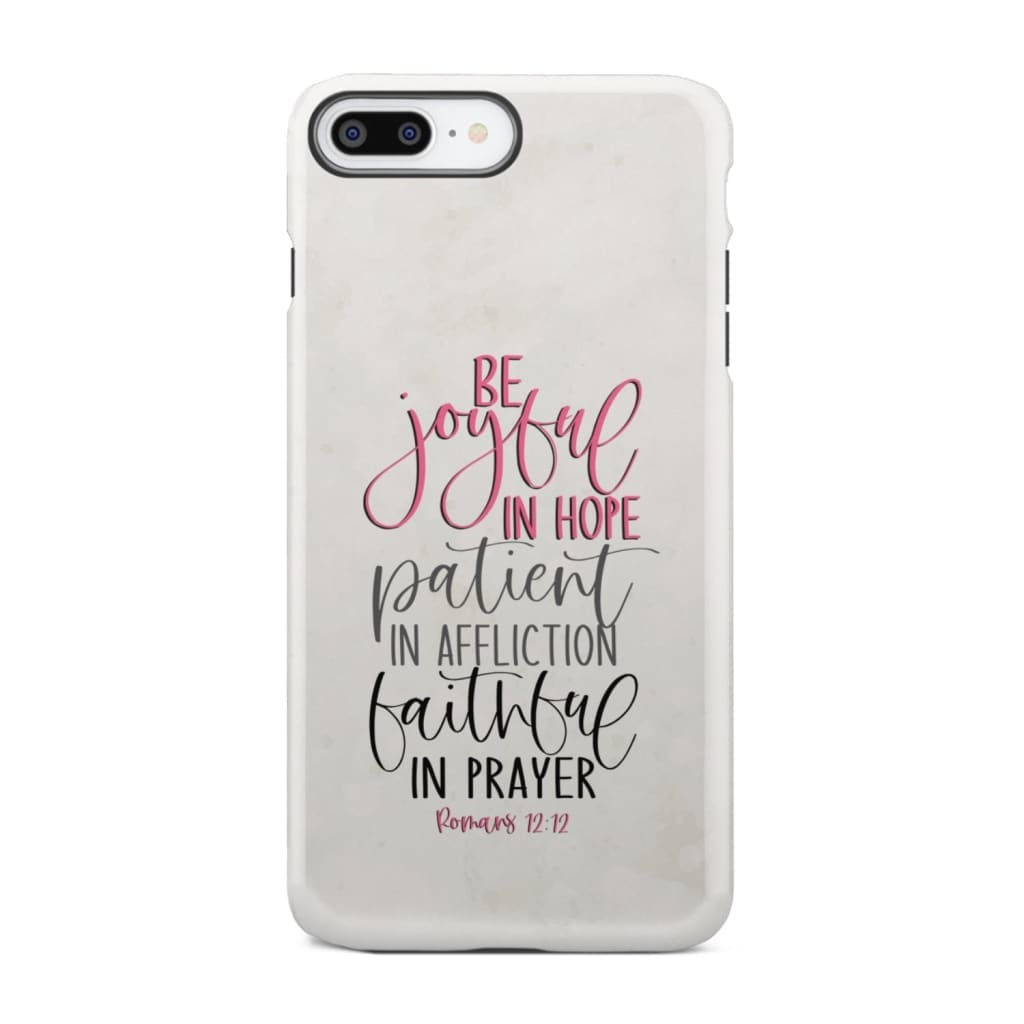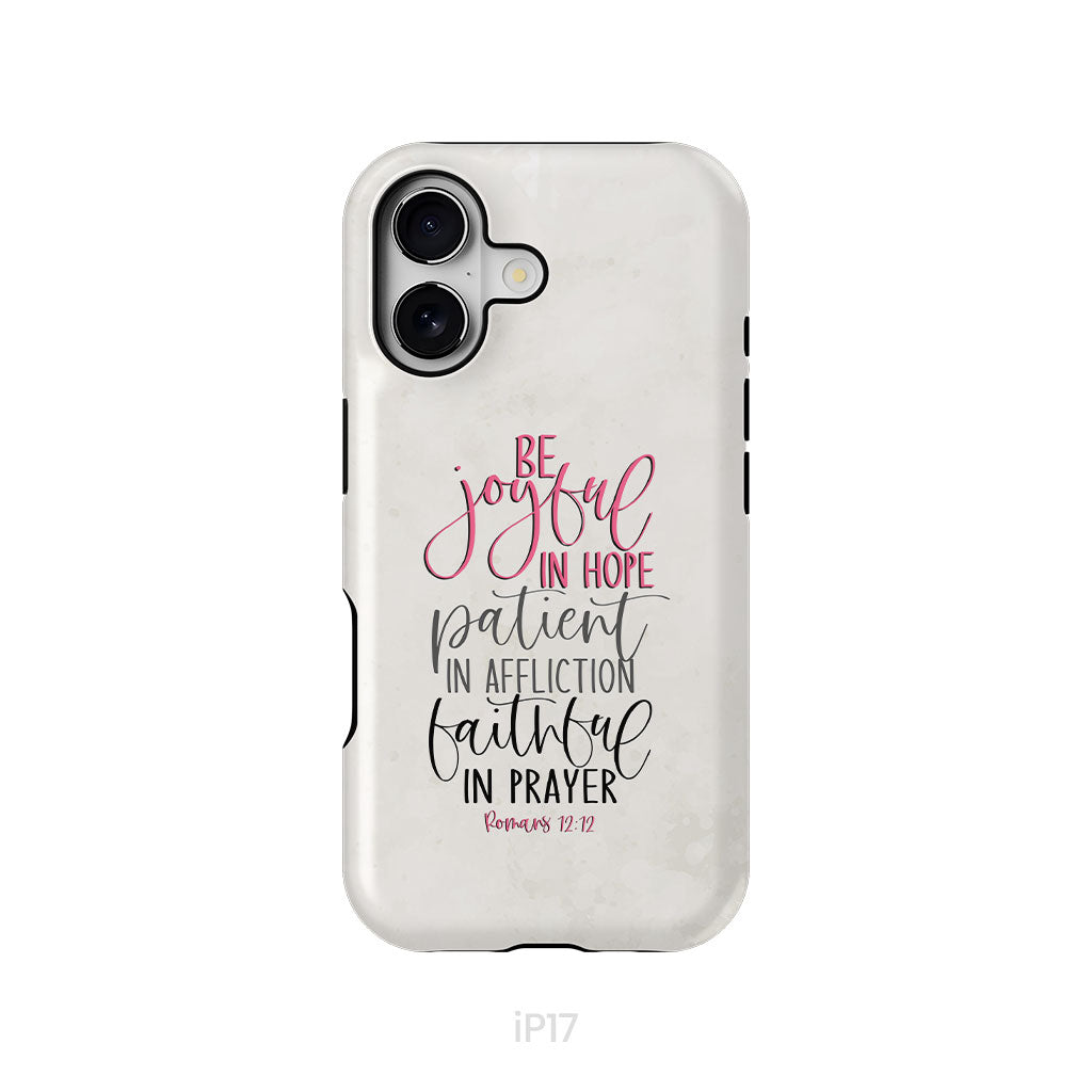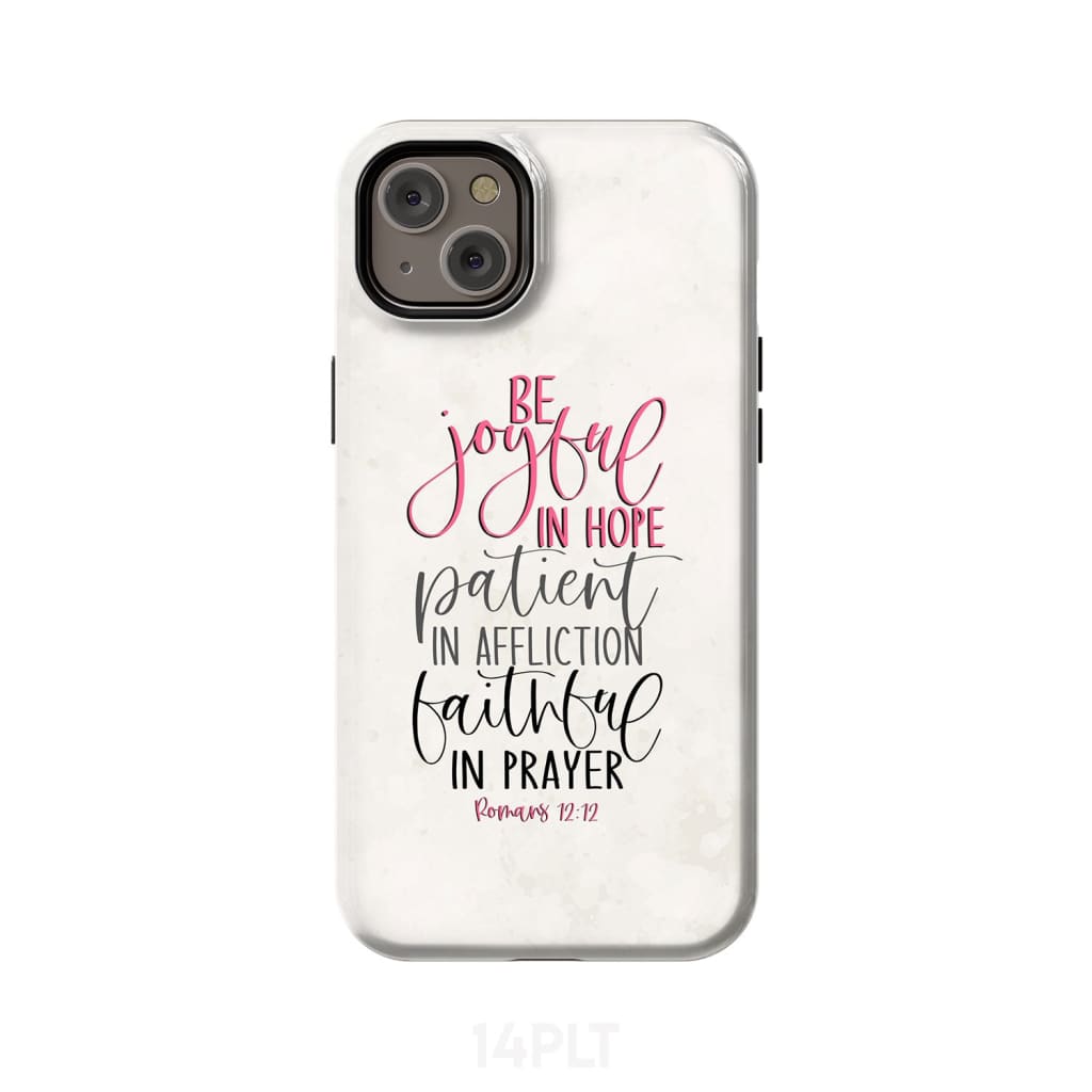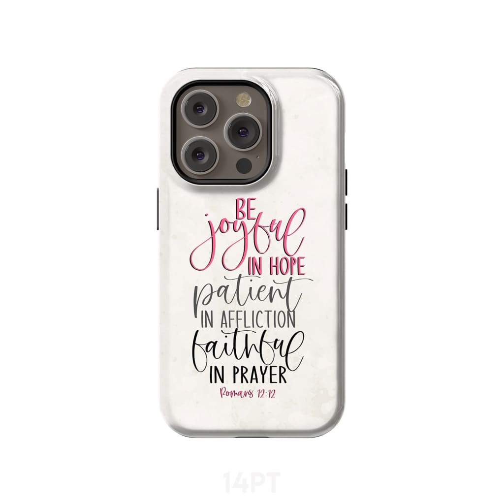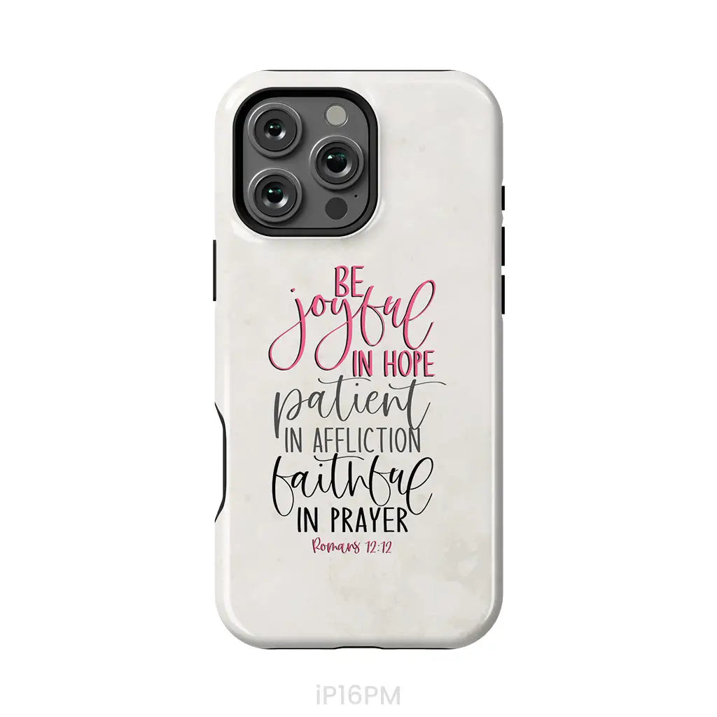 Be joyful in hope patient in affliction faithful in prayer Christian phone case