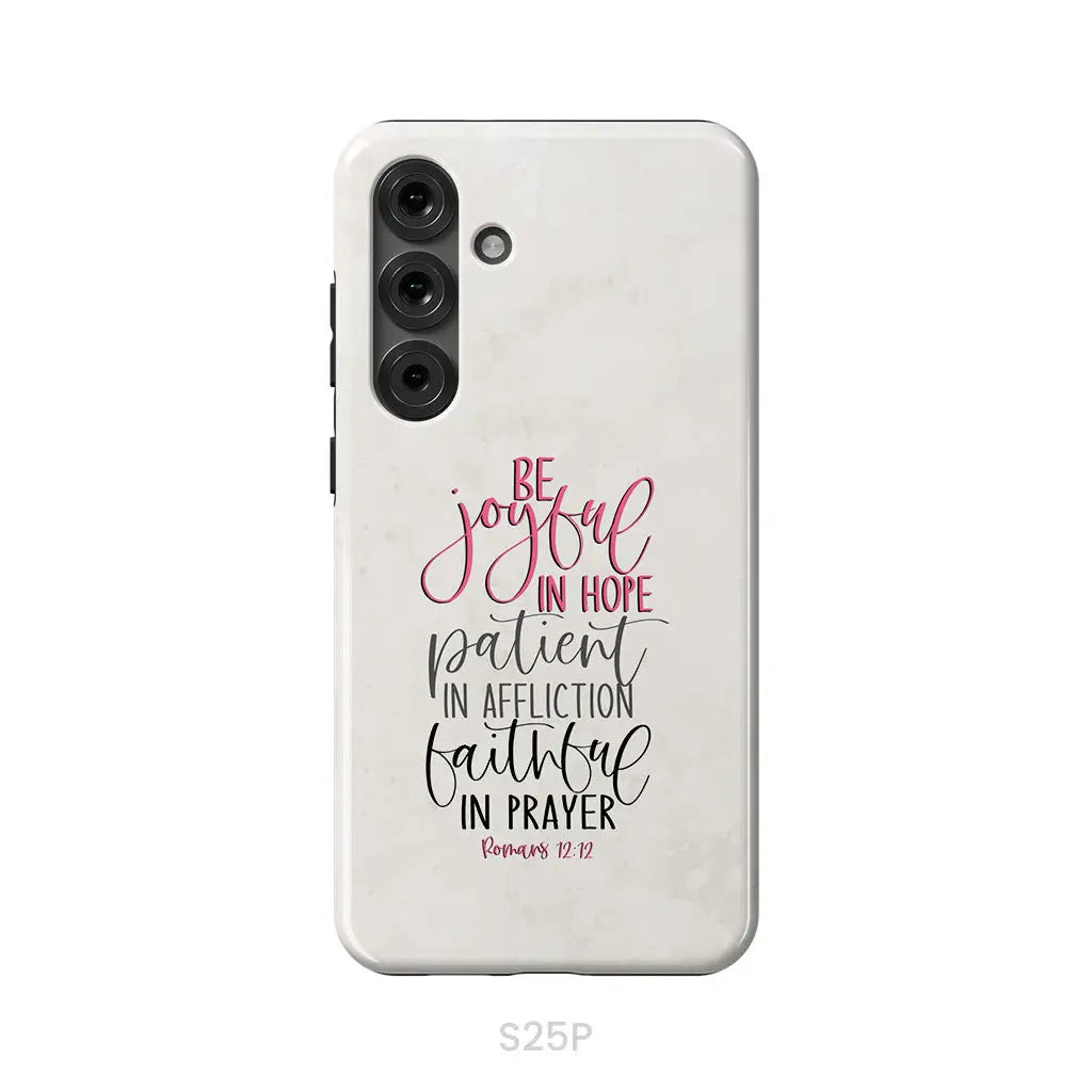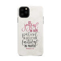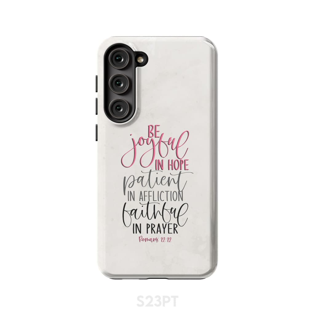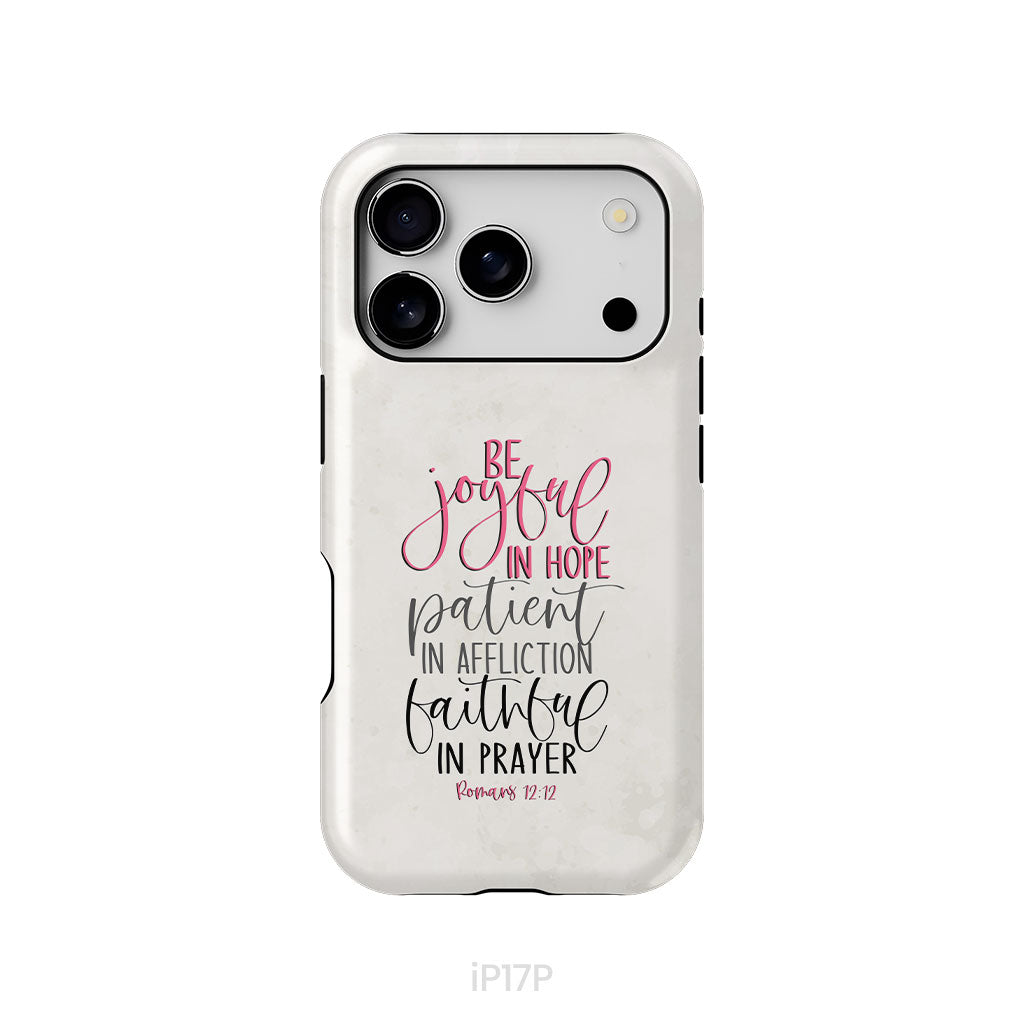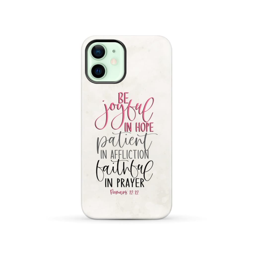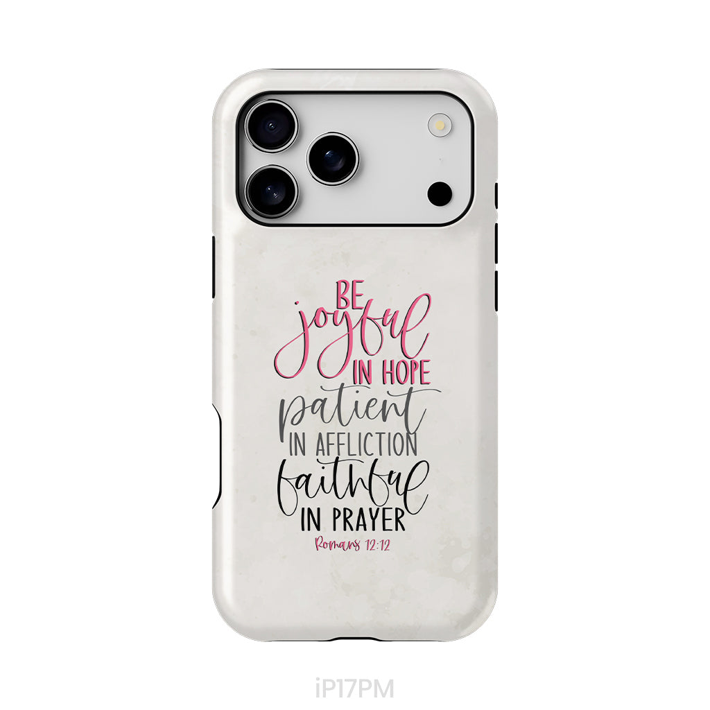 Be joyful in hope patient in affliction faithful in prayer Christian phone case