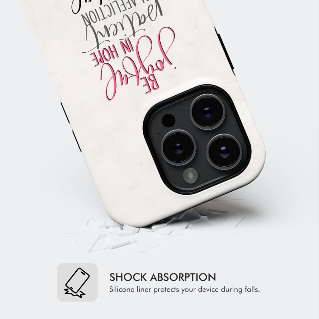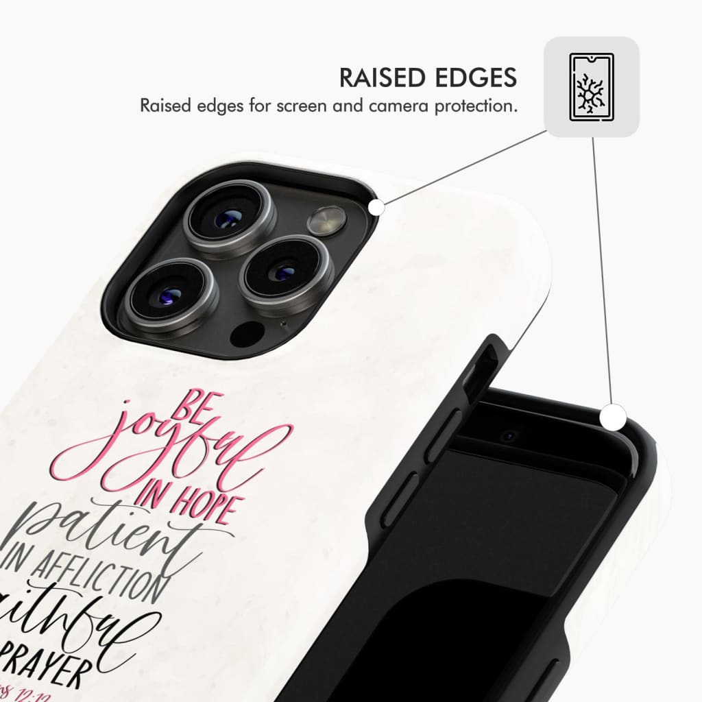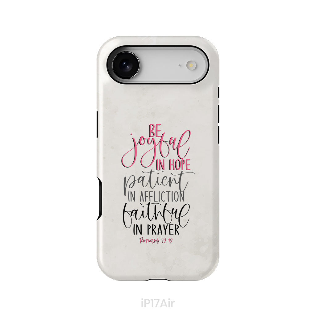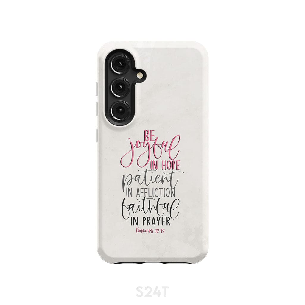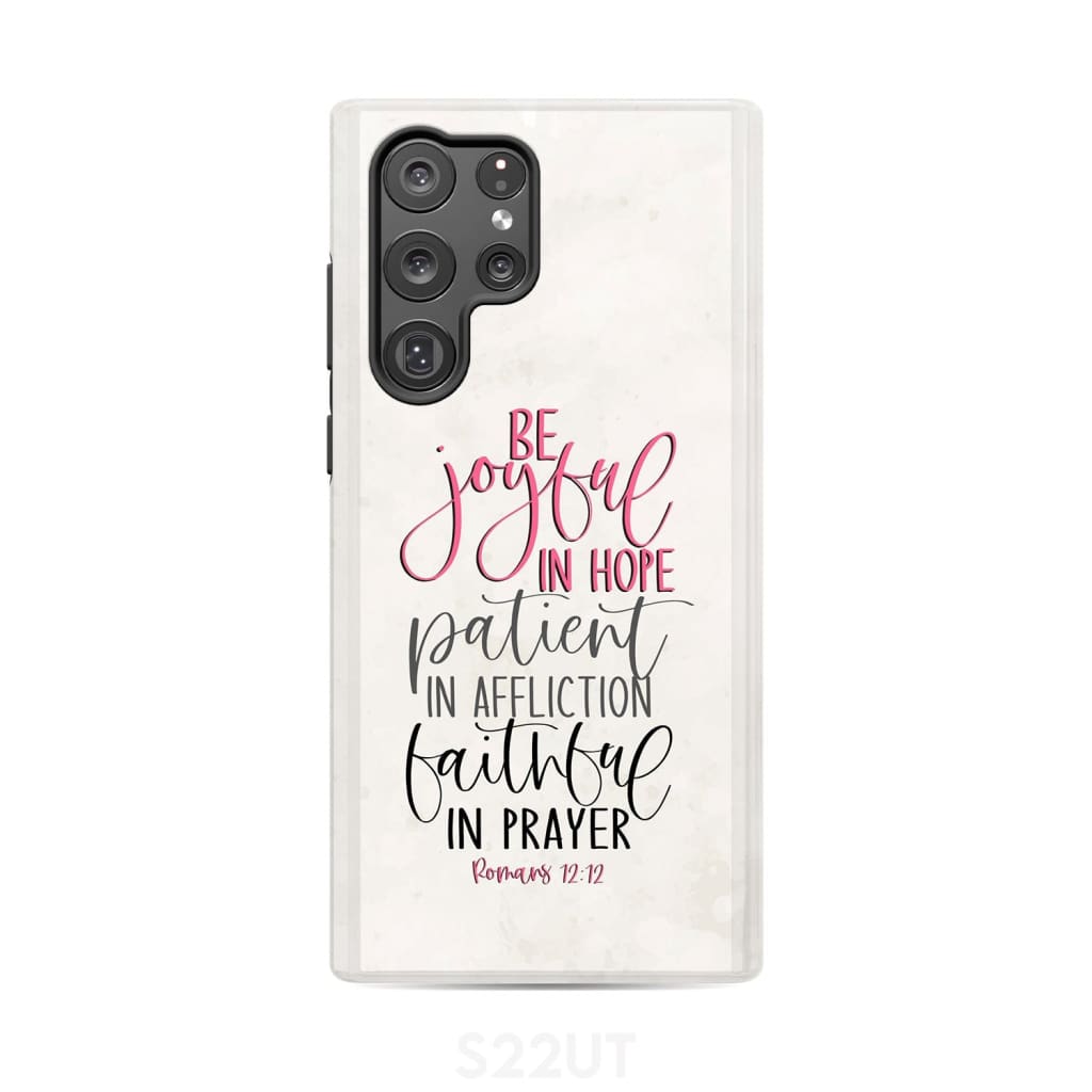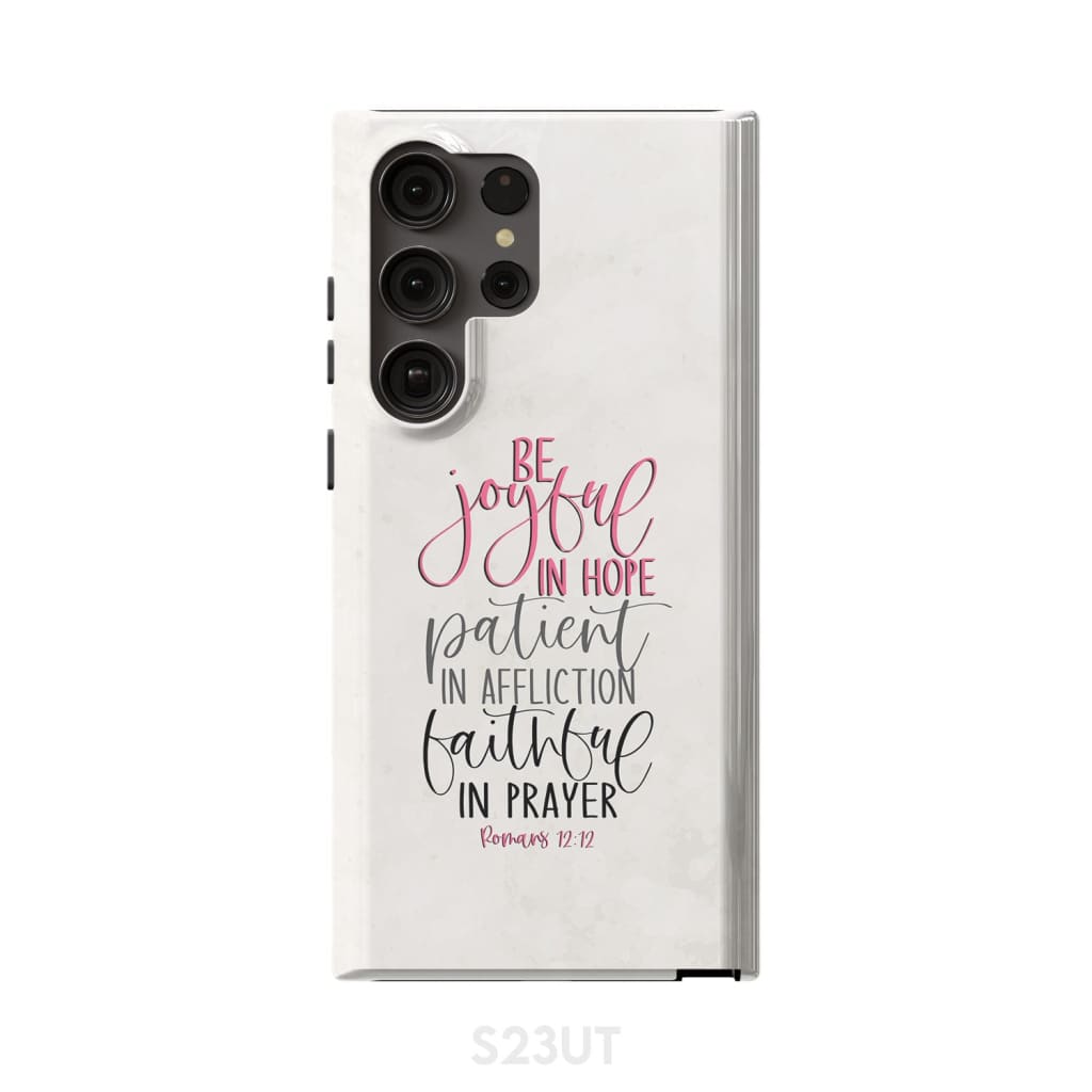 Be joyful in hope patient in affliction faithful in prayer Christian phone case