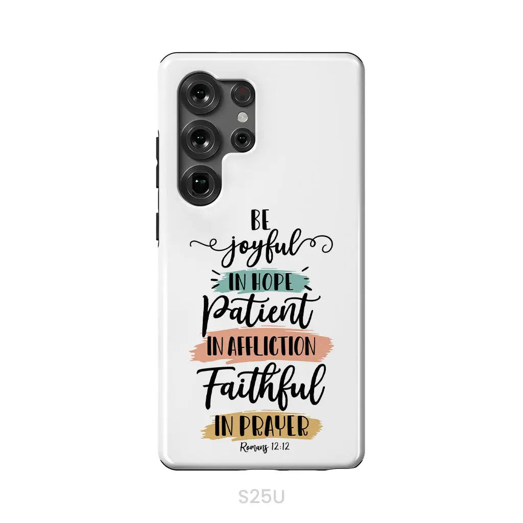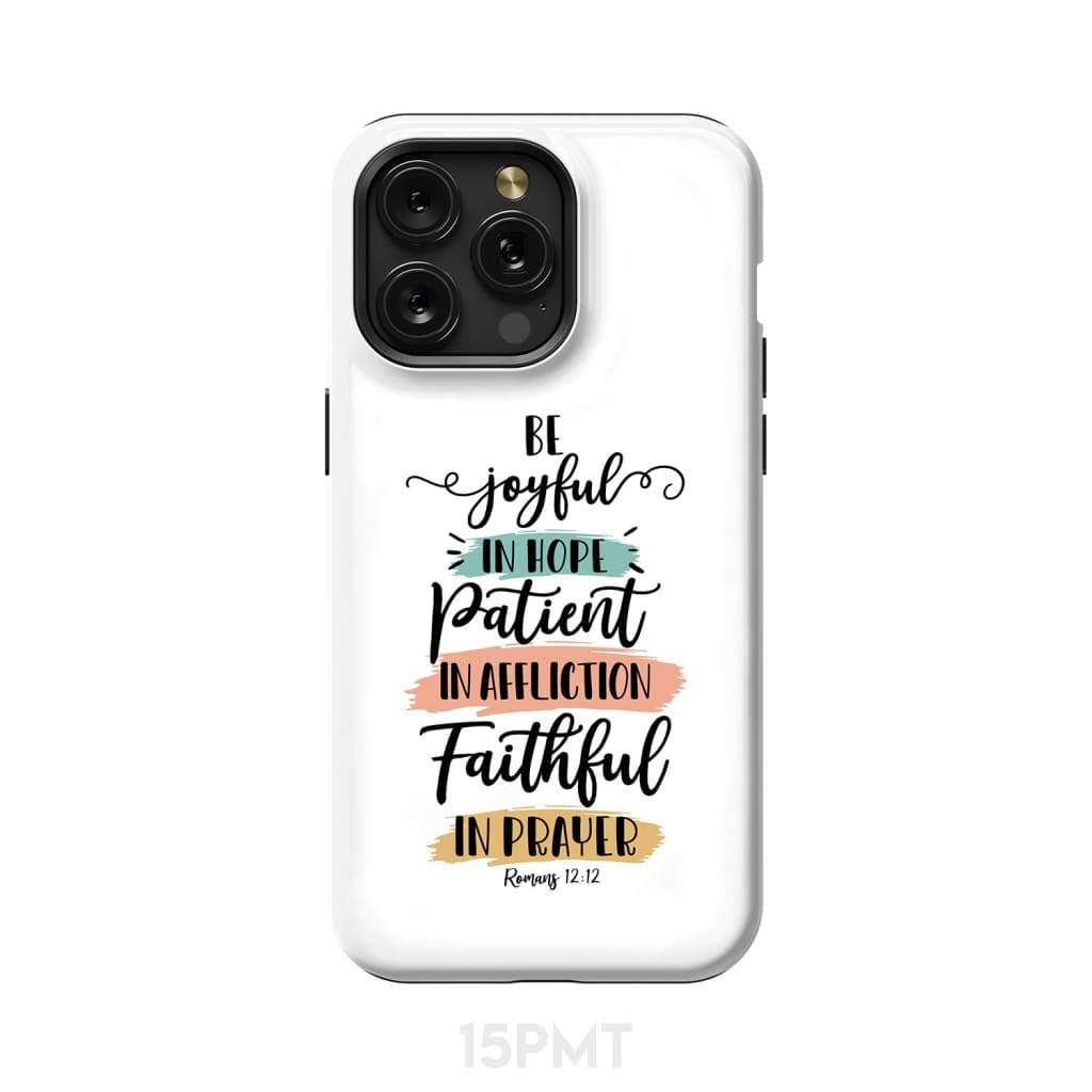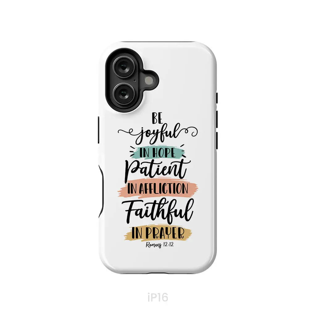 Be joyful in hope patient in affliction faithful in prayer phone case, Christian phone cases