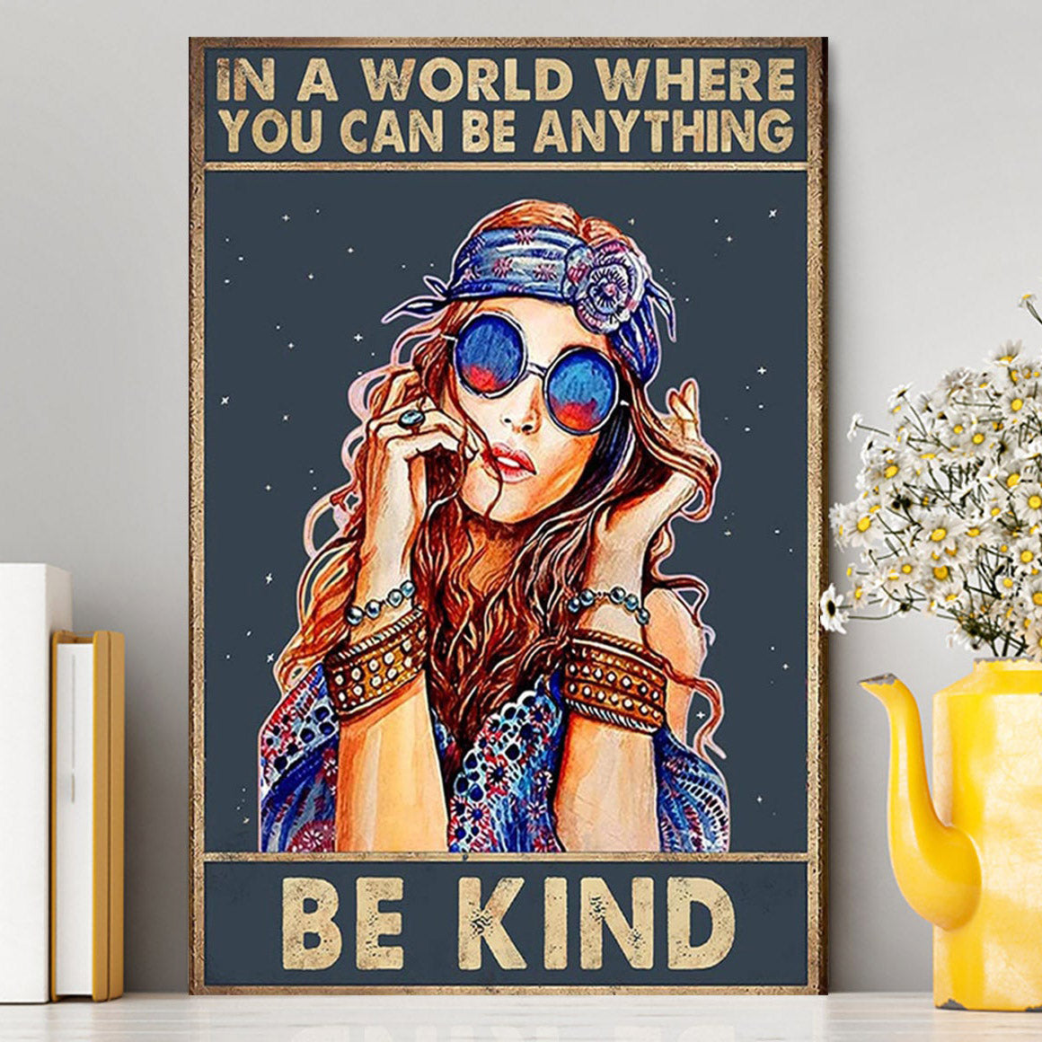 Be Kind Canvas Wall Decor - Boho Wall Decor - Hippie Room Decor - Bohemian Wall Decor