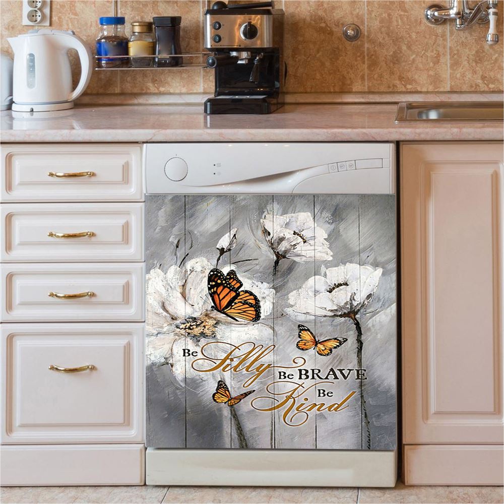 Be Silly Be Brave Be Kind Monarch Butterfly White Flower Dishwasher Cover, Bible Verse Dishwasher Magnet Cover, Christian Inspirational Kitchen Decor