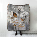 Be Silly Be Brave Be Kind Monarch Butterfly White Flower Woven Blanket Art - Bible Verse Throw Blanket - Christian Inspirational Boho Blanket