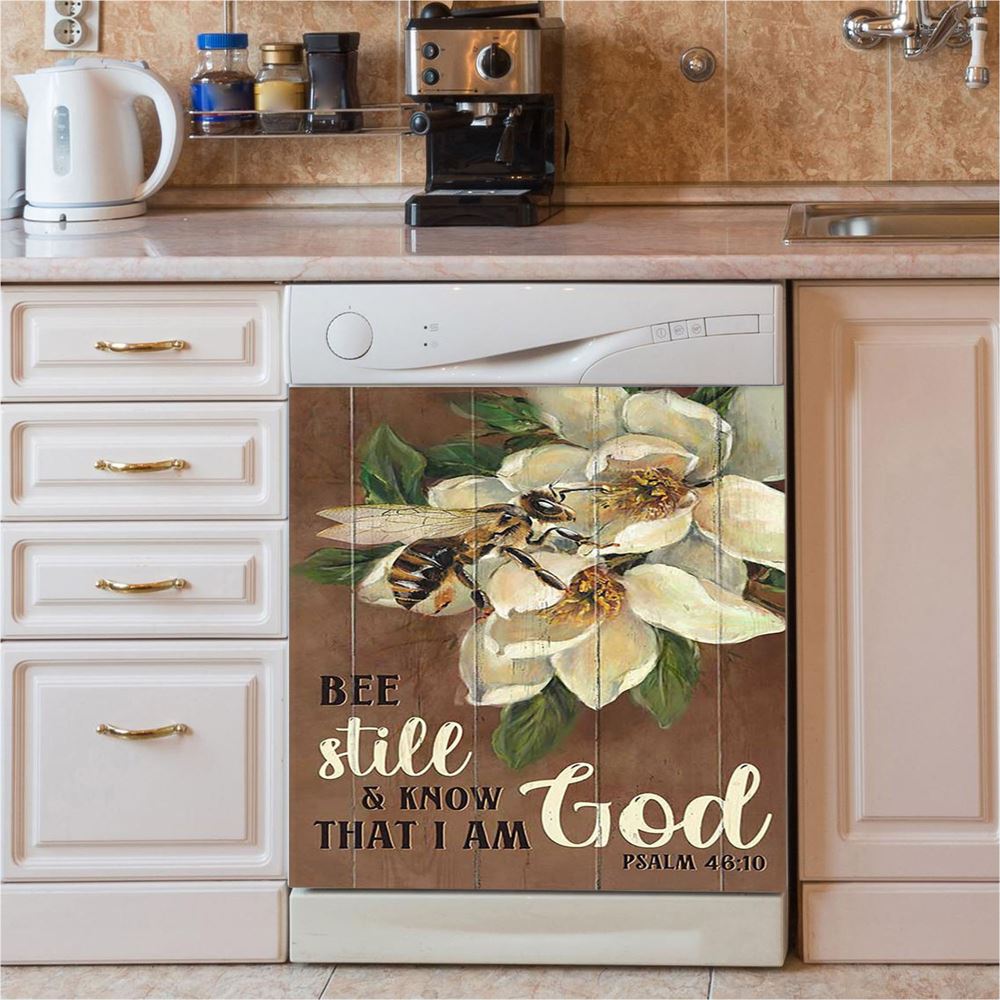 Be Still And Know That I Am God Bee Sweet Flower Dishwasher Cover, Bible Verse Dishwasher Magnet Cover, Christian Inspirational Kitchen Decor