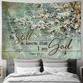 Be Still And Know That I Am God Blue Butterfly White Flowers Large Tapestry - Christian Wall Art - Bible Verse Tapestry Art