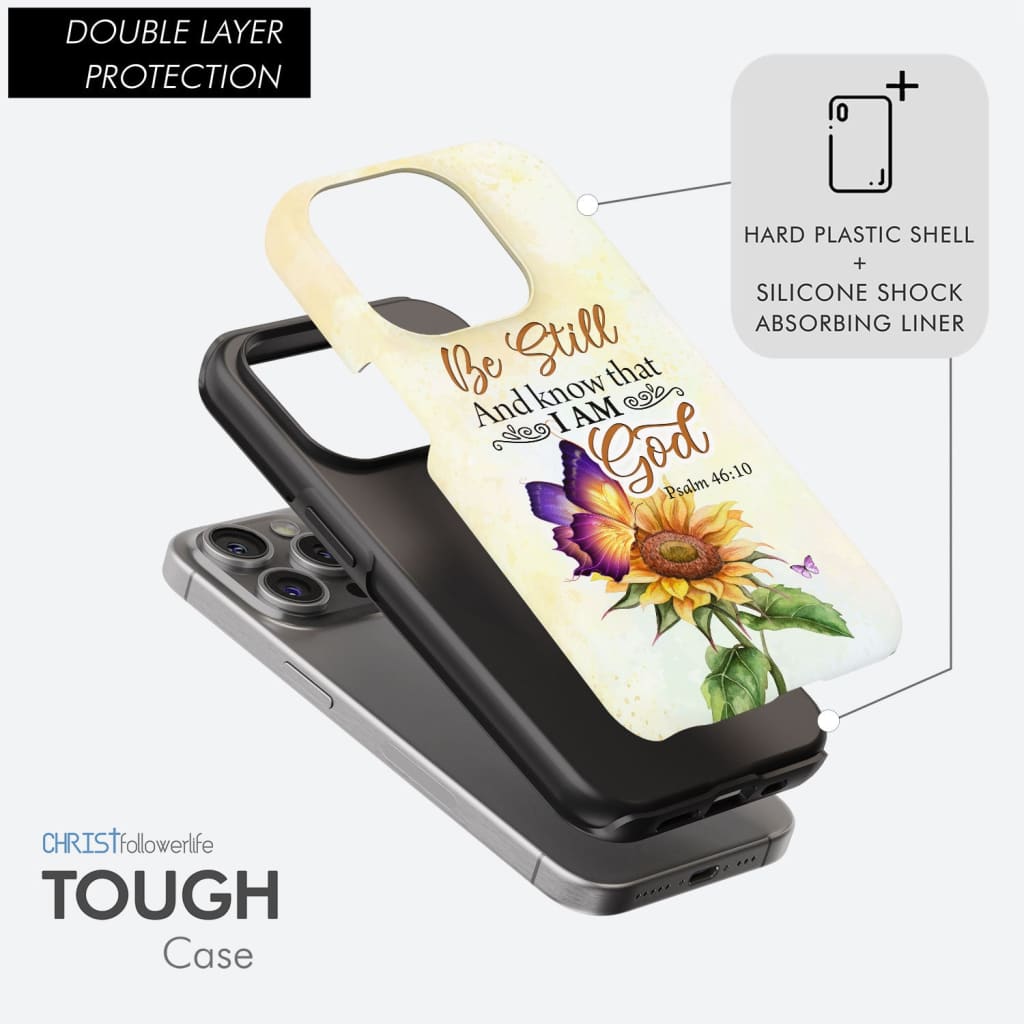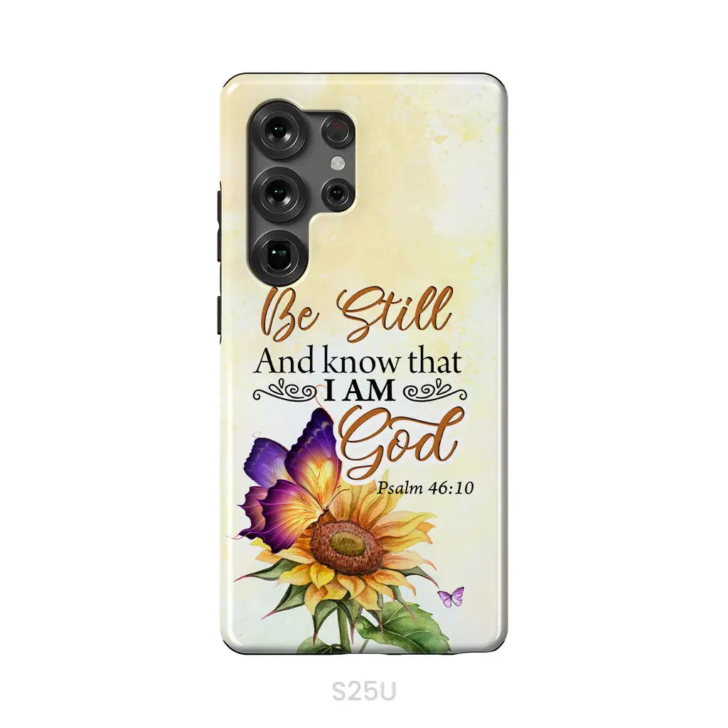 Bible Verse phone cases: Be still and know that I am God butterfly sunflower phone case