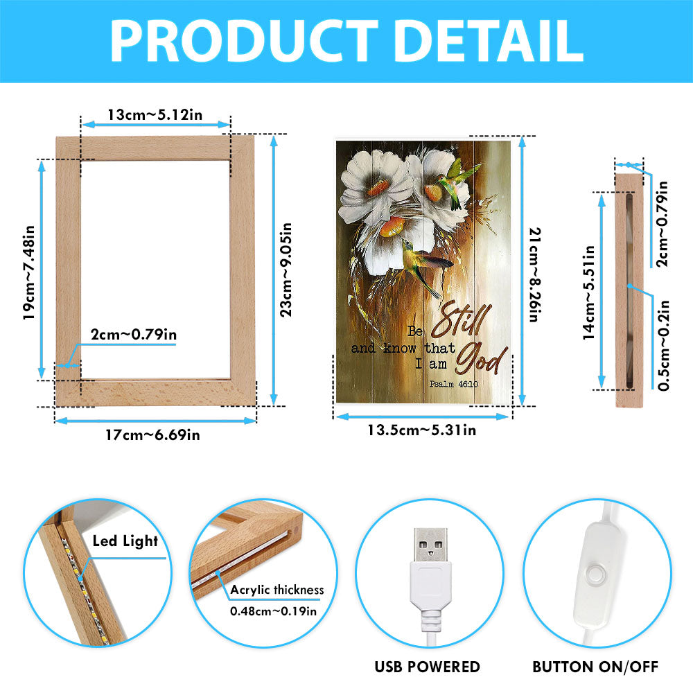 Be Still And Know That I Am God Daisy Hummingbird Frame Lamp Art - Christian Art - Bible Verse Art - Religious Home Decor