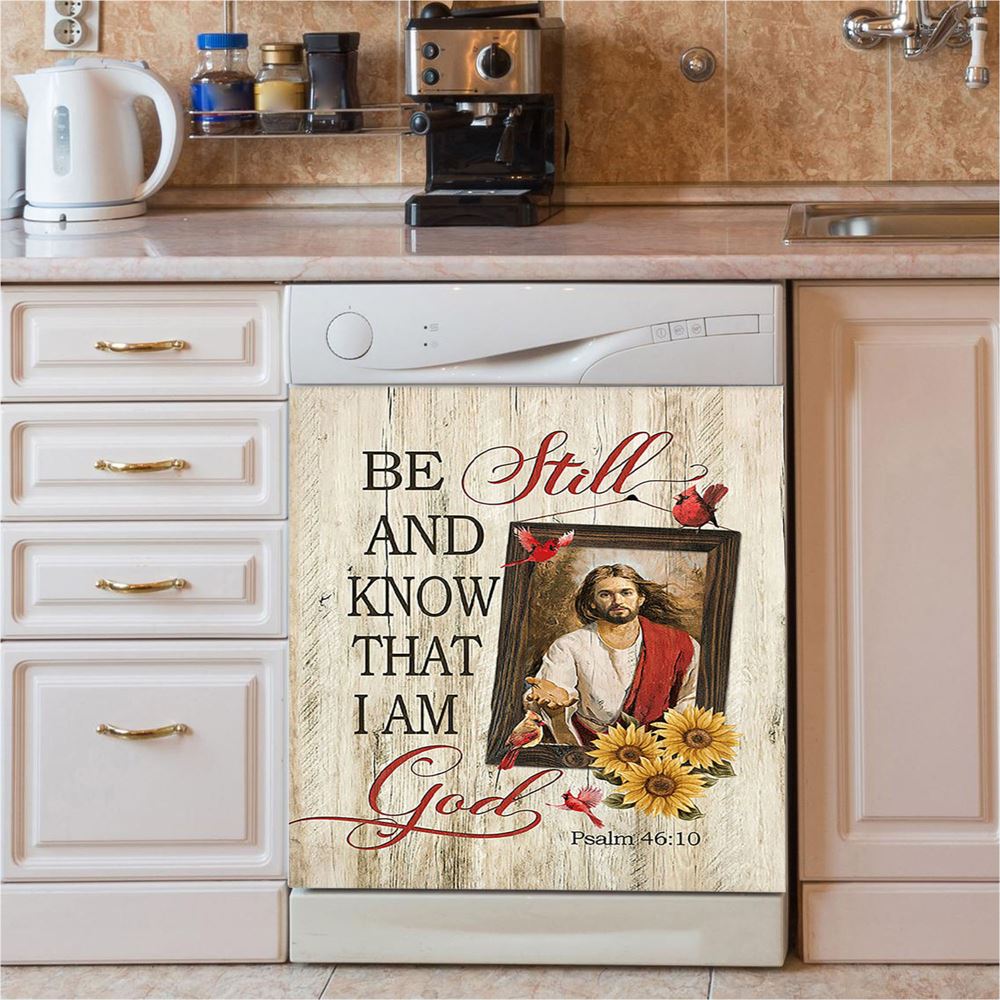Be Still And Know That I Am God Dishwasher Cover, Jesus And Lion Of Judah Painting Dishwasher Magnet Cover, Christian Kitchen Decor