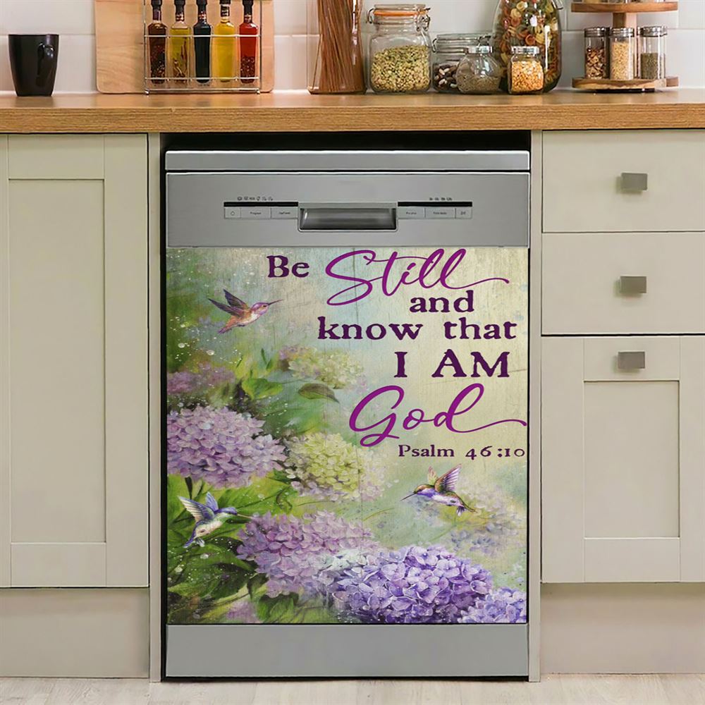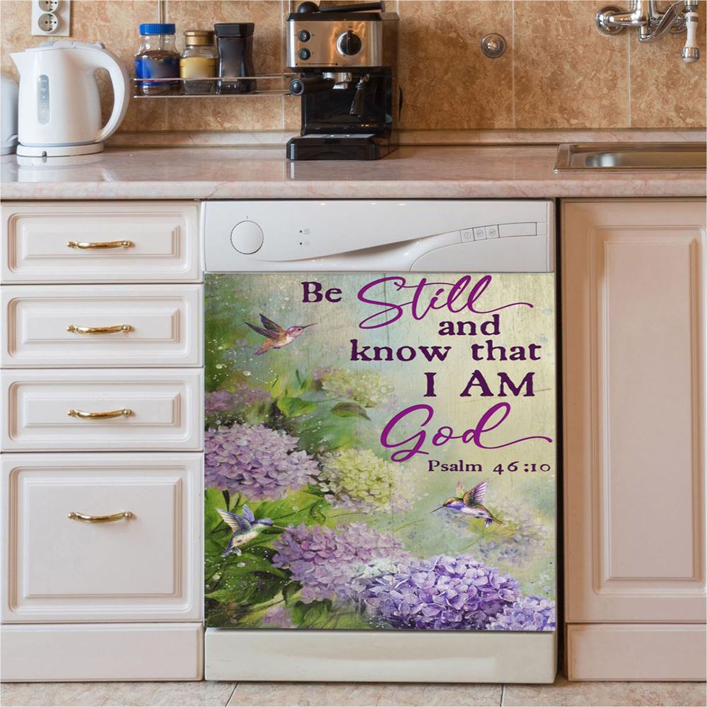 Be Still And Know That I Am God Flower Hummingbird Dishwasher Cover, Christian Dishwasher Magnet Cover, Religious Kitchen Decor