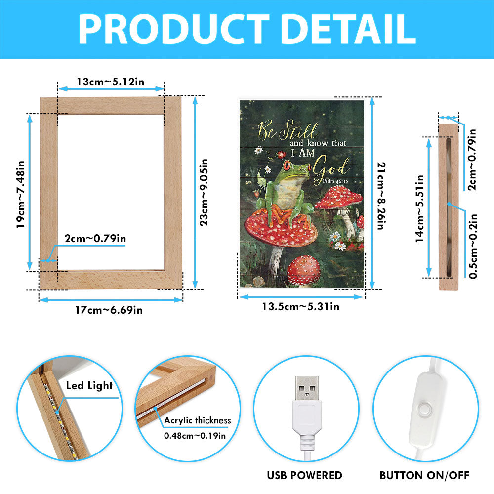 Be Still And Know That I Am God Frog Mushroom Frame Lamp Art - Bible Verse Art - Christian Inspirational Decor