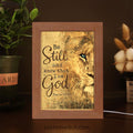 Be Still And Know That I Am God Lion Of Judah Frame Lamp Art - Bible Verse Art - Christian Inspirational Decor