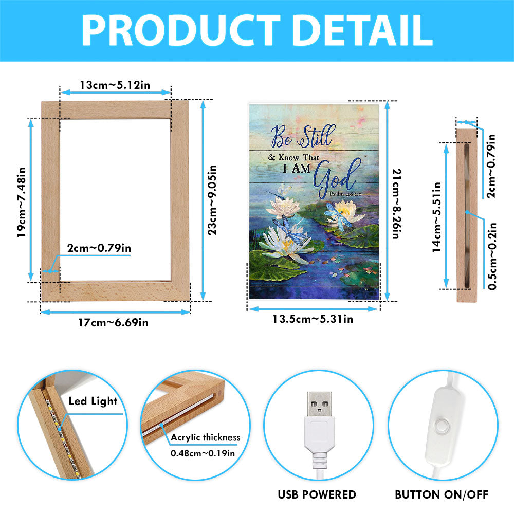 Be Still And Know That I Am God Lotus Dragonfly Frame Lamp Art - Bible Verse Art - Christian Inspirational Decor