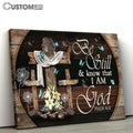 Be Still And Know That I Am God Old Cross Blue Butterfly Lily Large Canvas - Christian Wall Art - Bible Verse Canvas Art
