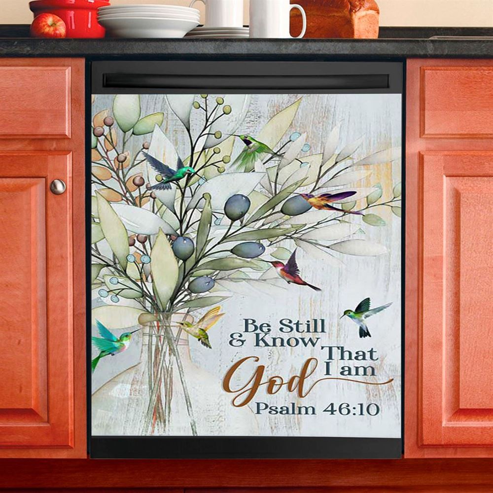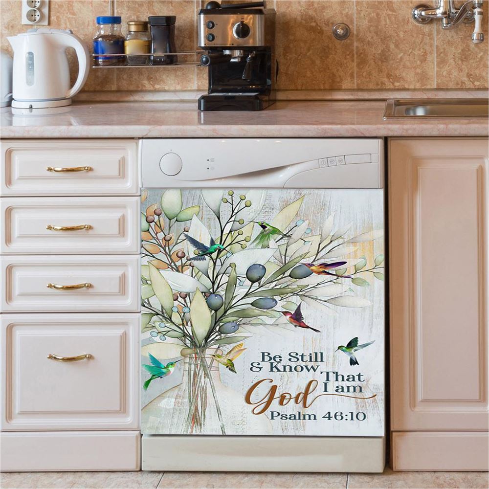 Be Still And Know That I Am God Olive Tree Hummingbird Dishwasher Cover, Bible Verse Dishwasher Magnet Cover, Christian Inspirational Kitchen Decor