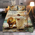 Be Still And Know That I Am God Quilt Bedding Set - Jesus Walking Lion Of Judah And Lamb Quilt Bedding Set Art - Bible Verse Bedroom