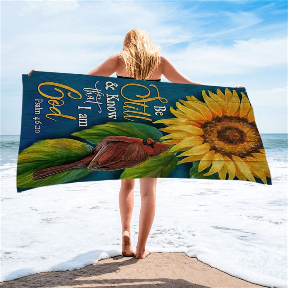 Be Still And Know That I Am God Sunflower Cardinal Beach Towel - Bible Verse Beach Towel - Christian Inspirational Beach Towel