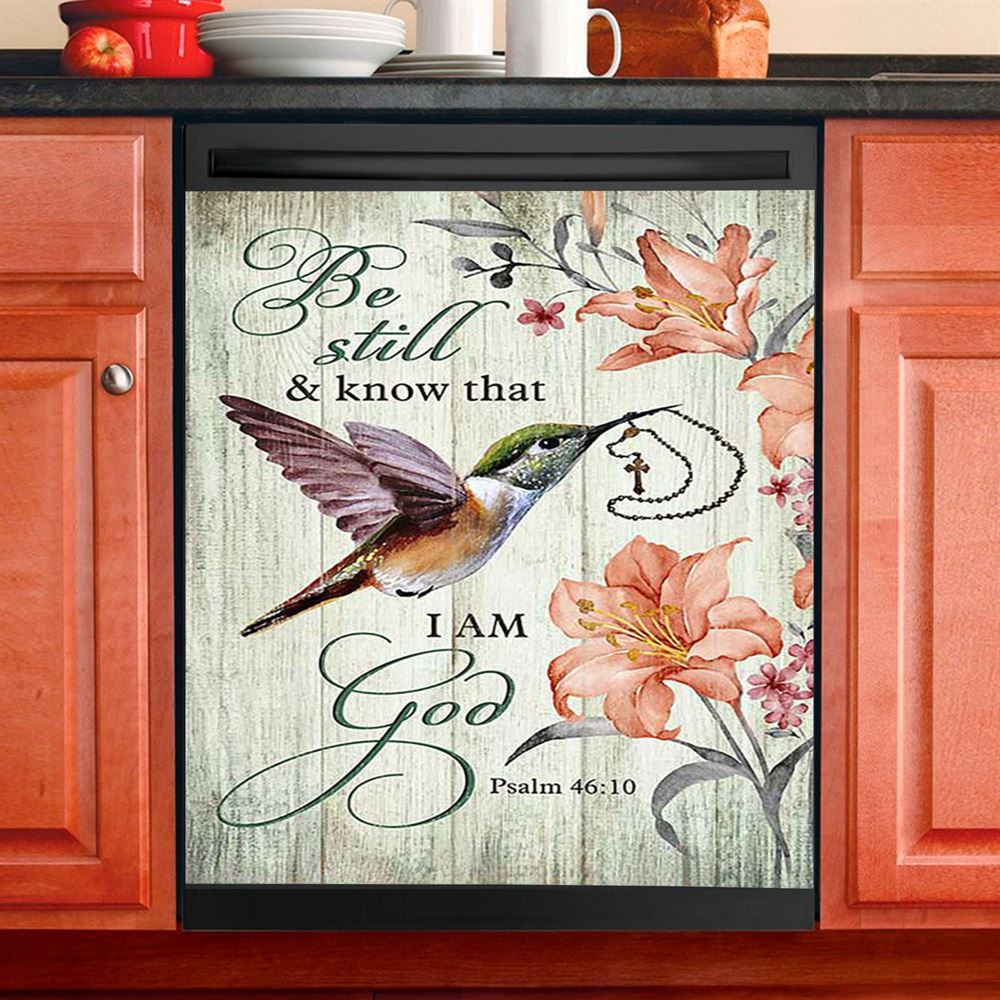 Be Still I Am God Hummingbird Orange Lily Dishwasher Cover, Bible Verse Dishwasher Magnet Cover, Christian Inspirational Kitchen Decor