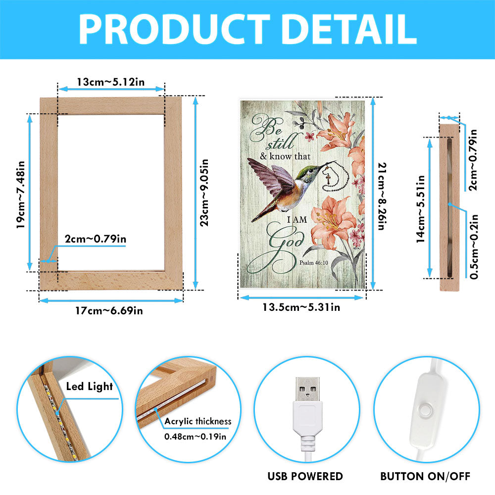 Be Still I Am God Hummingbird Orange Lily Frame Lamp Art - Bible Verse Art - Christian Inspirational Decor