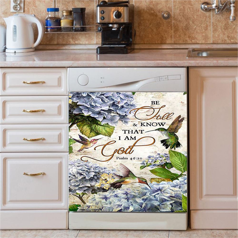 Be Still & Know That I Am God Blue Hydrangea Hummingbird Dishwasher Cover, Bible Verse Dishwasher Magnet Cover, Christian Home Decor