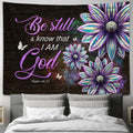 Be Still & Know That I Am God Flower Large Tapestry - Christian Wall Art - Bible Verse Tapestry Art
