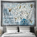 Be Still & Know That I Am God Hummingbird White Flowers Tapestry Wall Art - Bible Verse Tapestry - Religious Tapestry Wall Hanging