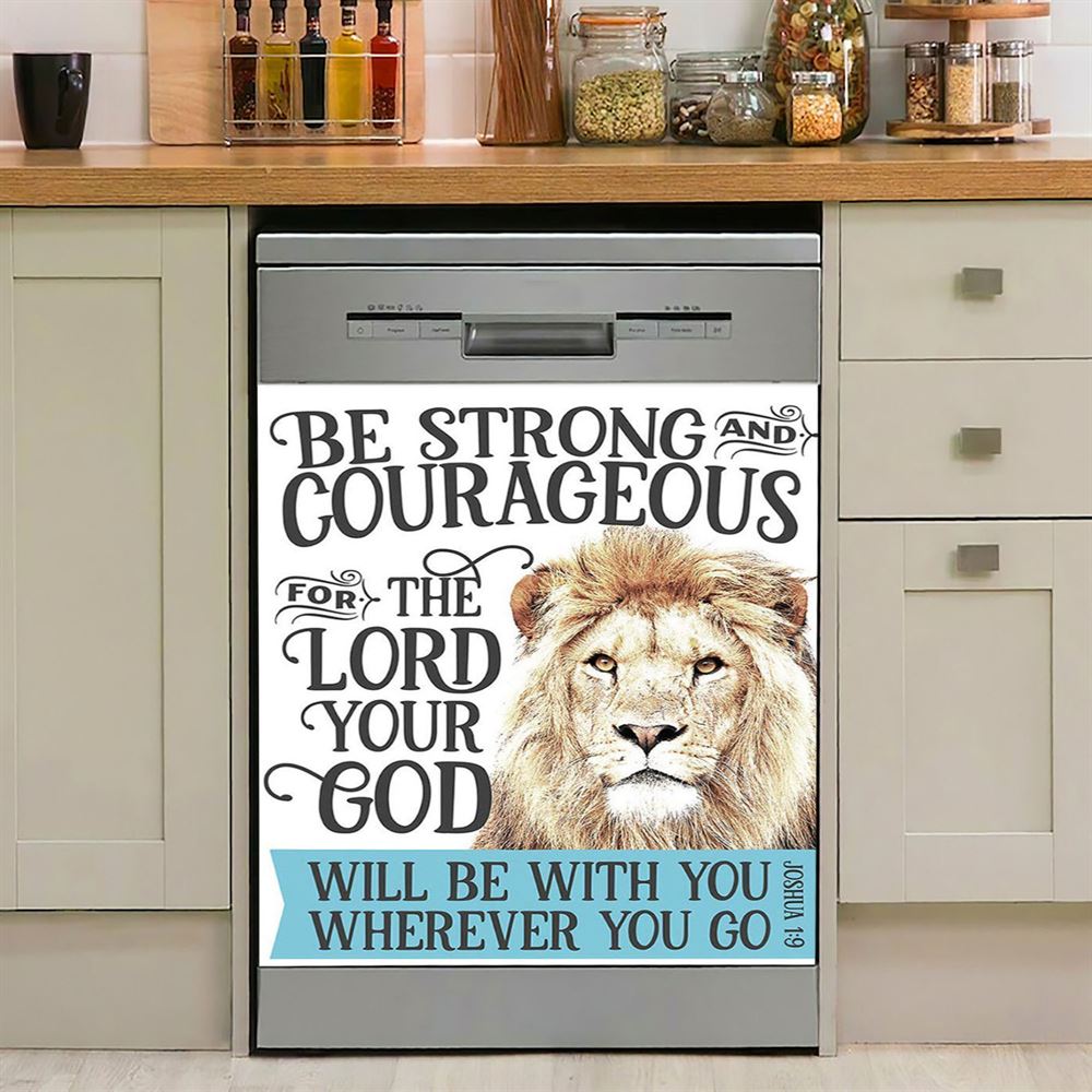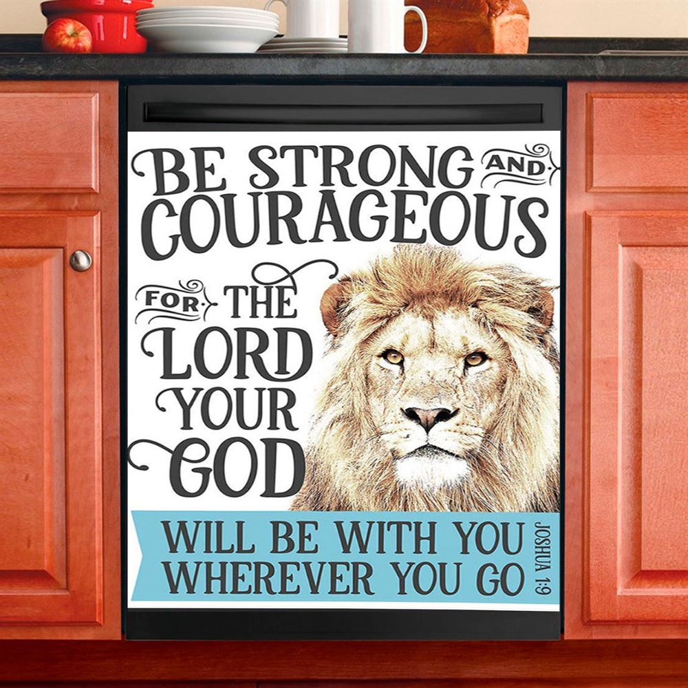 Be Strong And Courageous Lion Dishwasher Cover, Christian Dishwasher Magnet Cover