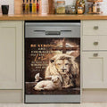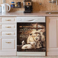 Be Strong And Courageous Lion White Lamb Dishwasher Cover, Bible Verse Dishwasher Magnet Cover, Christian Inspirational Kitchen Decor