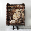 Be Strong And Courageous Lion White Lamb Woven Blanket Art - Bible Verse Throw Blanket - Christian Inspirational Boho Blanket
