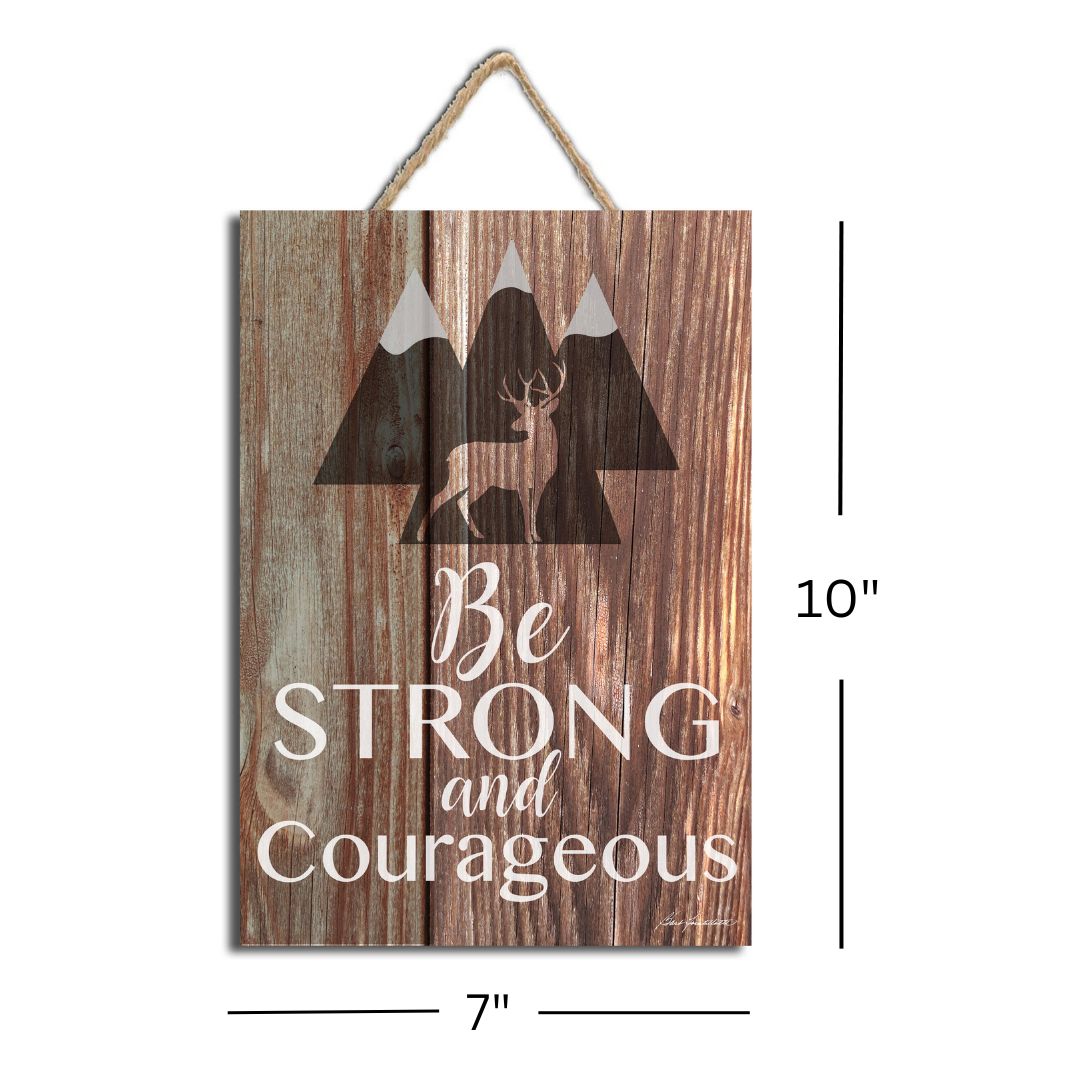 Be Strong and Courageous Wooden Sign with Rope Hanger