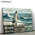 Beach Painting Walking With Jesus Way Maker Miracle Worker Canvas Poster