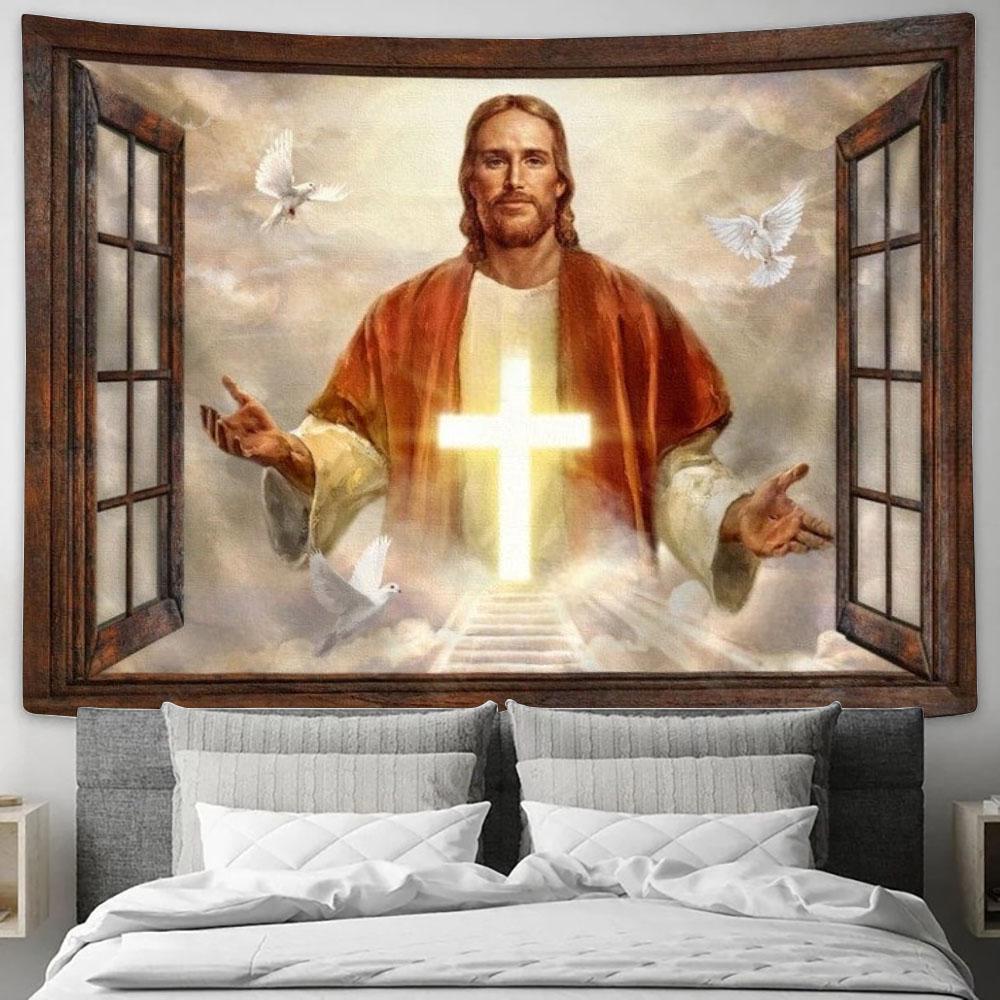 Beautiful Cross Dove Come With Me Jesus Tapestry, Tapestries for Living Room Bedroom