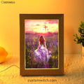Beautiful Girl In The Lavender Field Cross Frame Lamp Art - Christian Night Light - Bible Verse Wooden Lamp