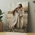 Beautiful Girl, Jesus Hug, Flower Field Canvas, Christmas Gift for Christian