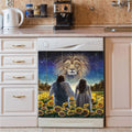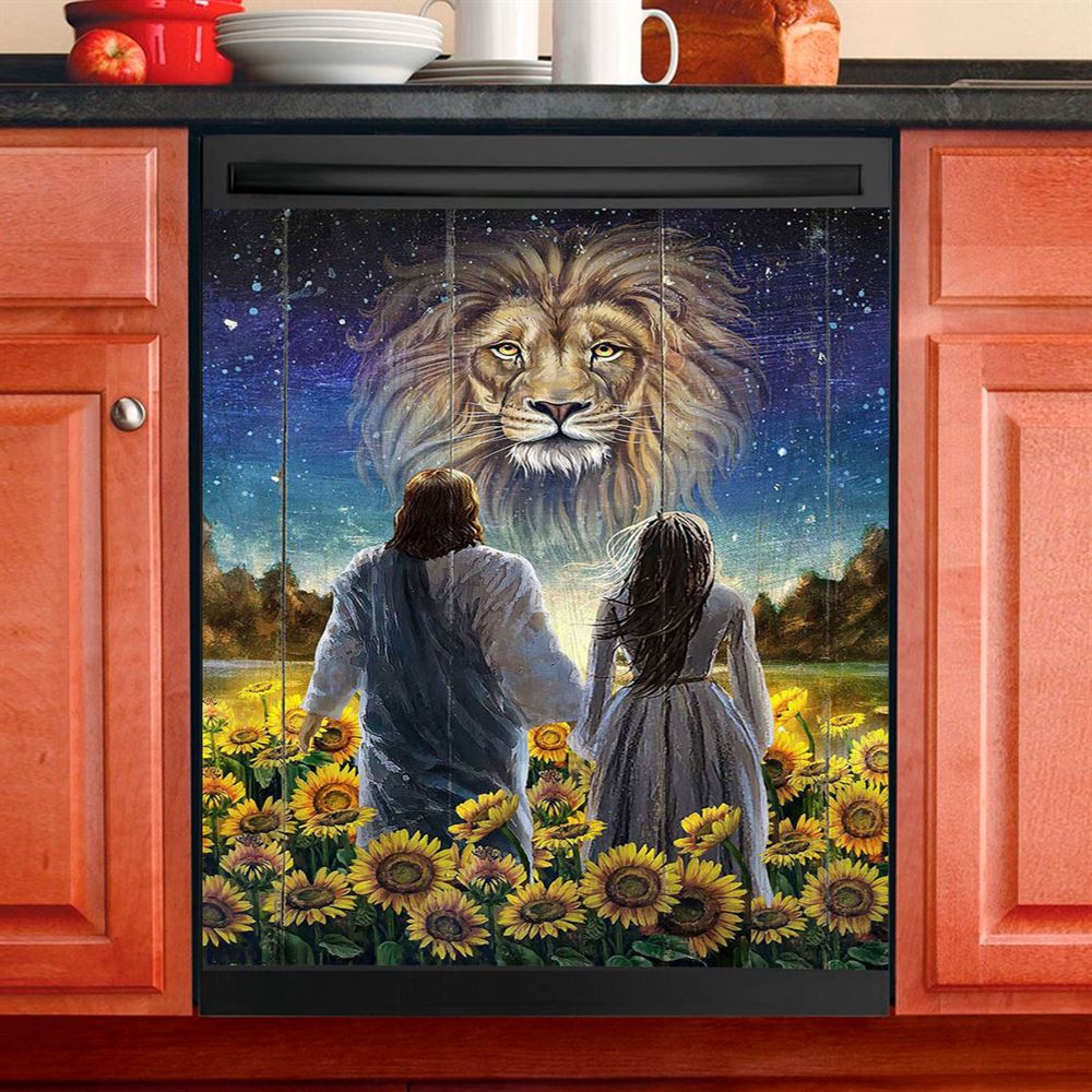 Beautiful Girl Lion Walking With Jesus Sunflower Field Dishwasher Cover, Christian Dishwasher Magnet Cover, Bible Verse Kitchen Decor