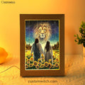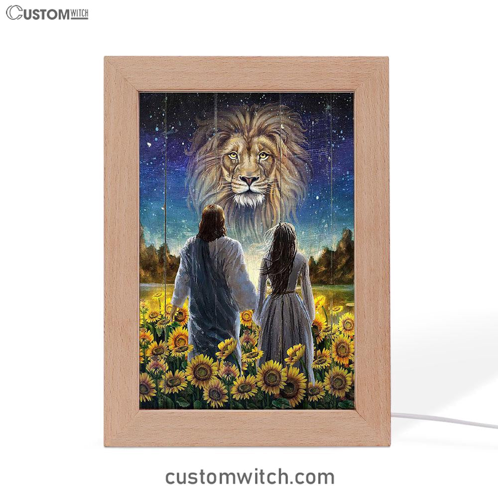 Beautiful Girl Lion Walking With Jesus Sunflower Field Frame Lamp Art - Christian Art - Bible Verse Art - Religious Home Decor