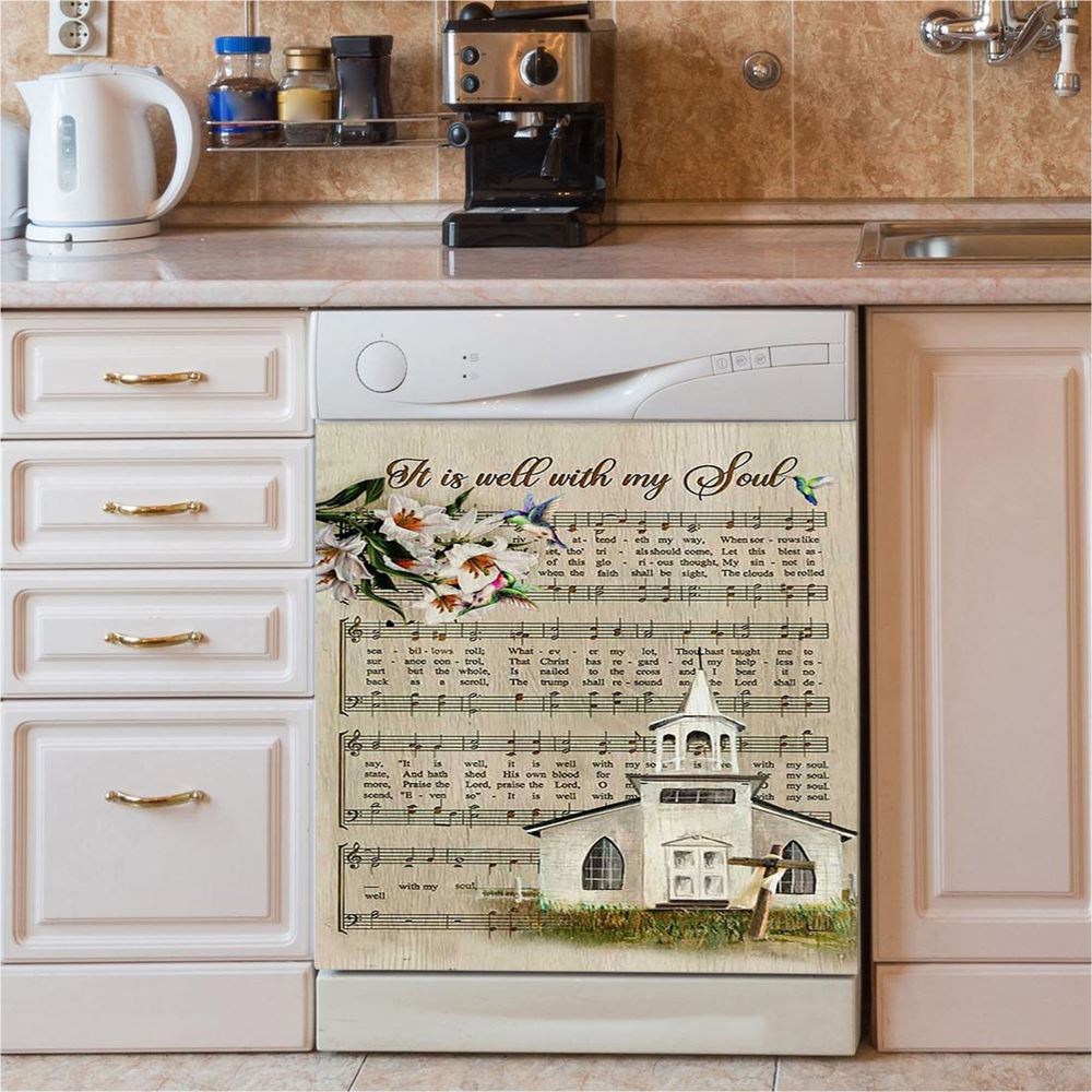 Beautiful Lily It Is Well With My Soul Dishwasher Cover, Bible Verse Dishwasher Magnet Cover, Christian Inspirational Kitchen Decor