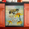 Bee Still And Know That I Am God Bee Flower Dishwasher Cover, Bible Verse Dishwasher Magnet Cover, Inspirational Kitchen Decor
