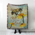 Bee Still And Know That I Am God Bee Flower Woven Throw Blanket - Bible Verse Woven Blanket Art - Inspirational Art - Christian Home Decor