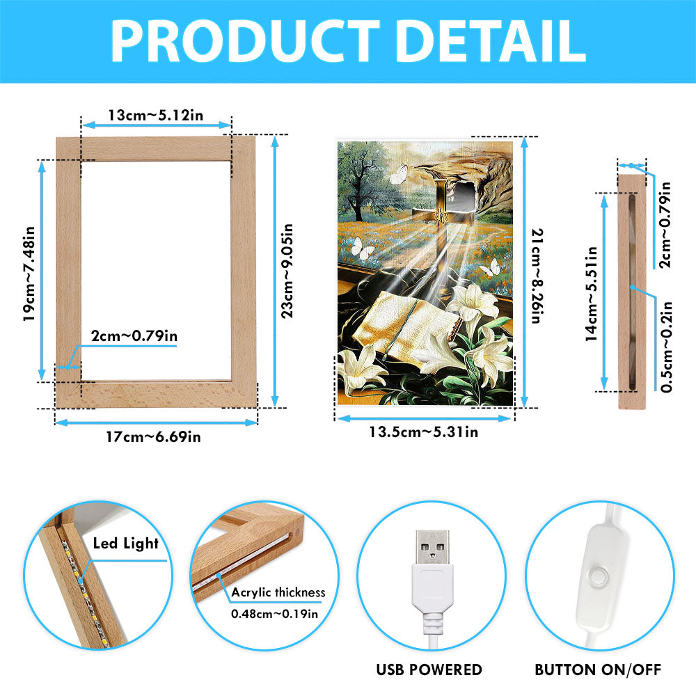 Bible Book Lily Flowers Golden Cross White Butterfly Frame Lamp Art - Bible Verse Wooden Lamp - Inspirational Art - Christian Home Decor