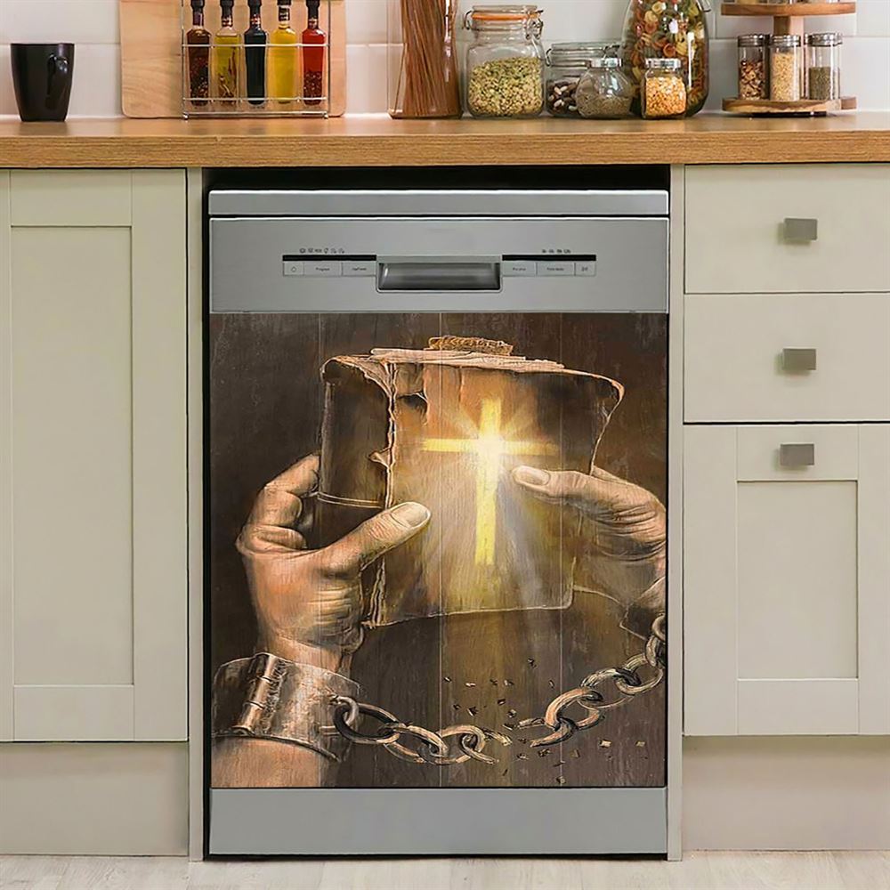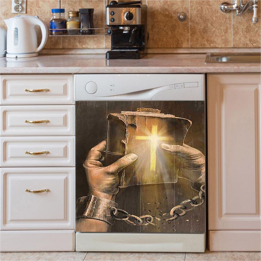 Bible Jesus Hands Light Cross Dishwasher Cover, Bible Verse Dishwasher Magnet Cover, Inspirational Kitchen Decor