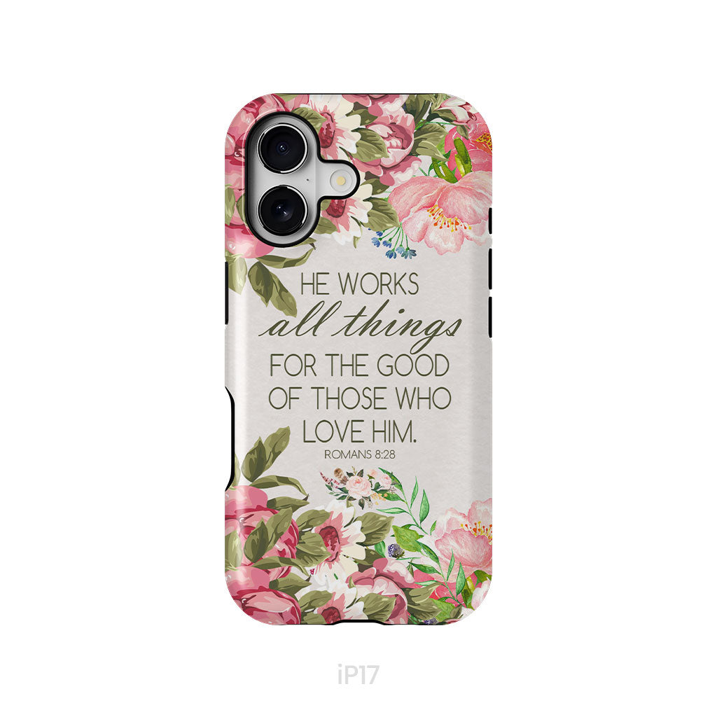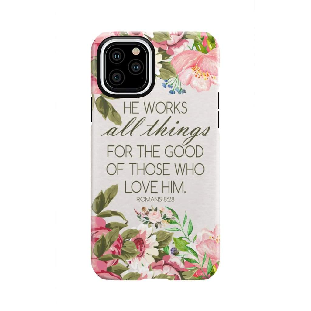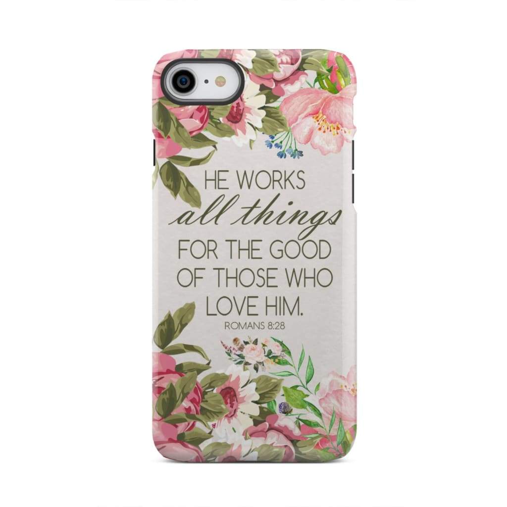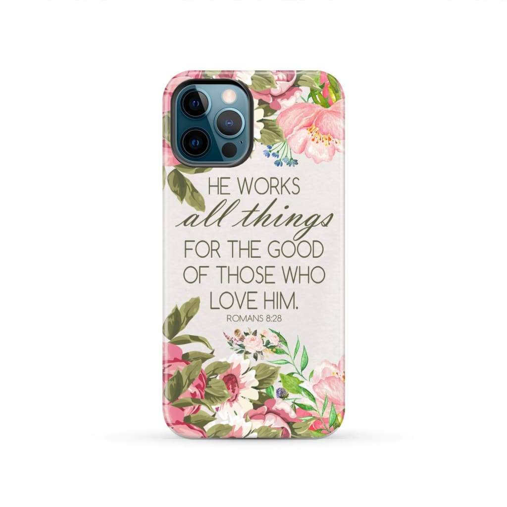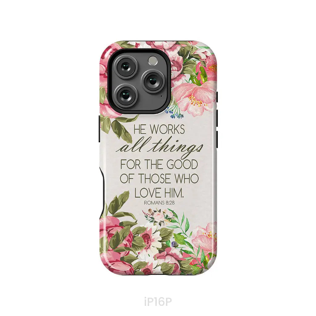 He Works All Things For Good Romans 8:28 Bible Verse Phone Case