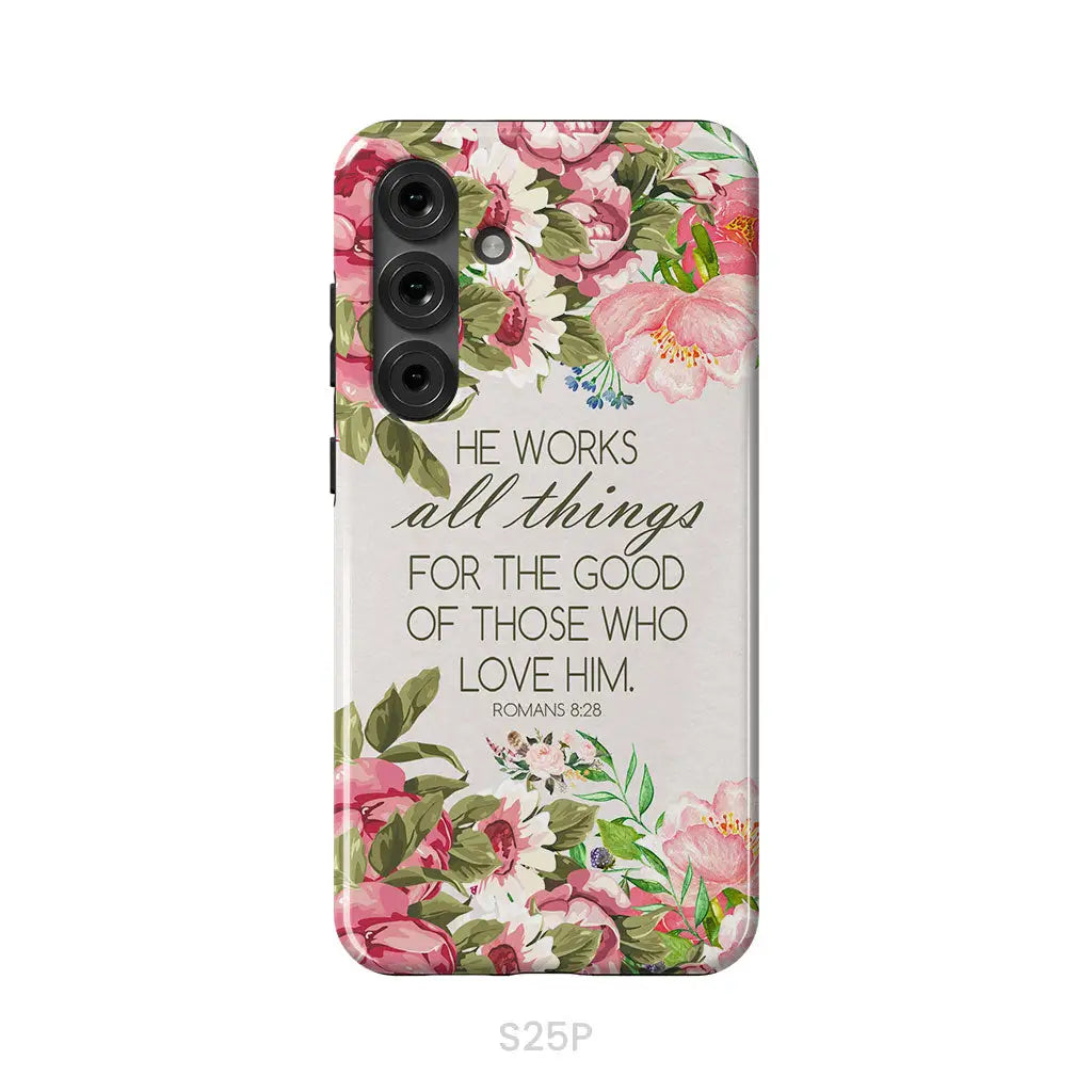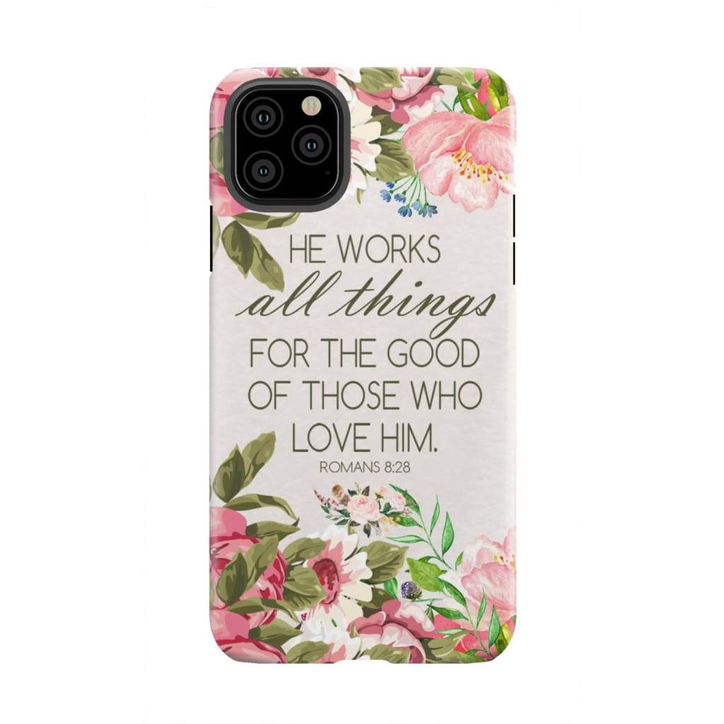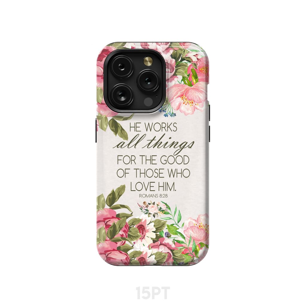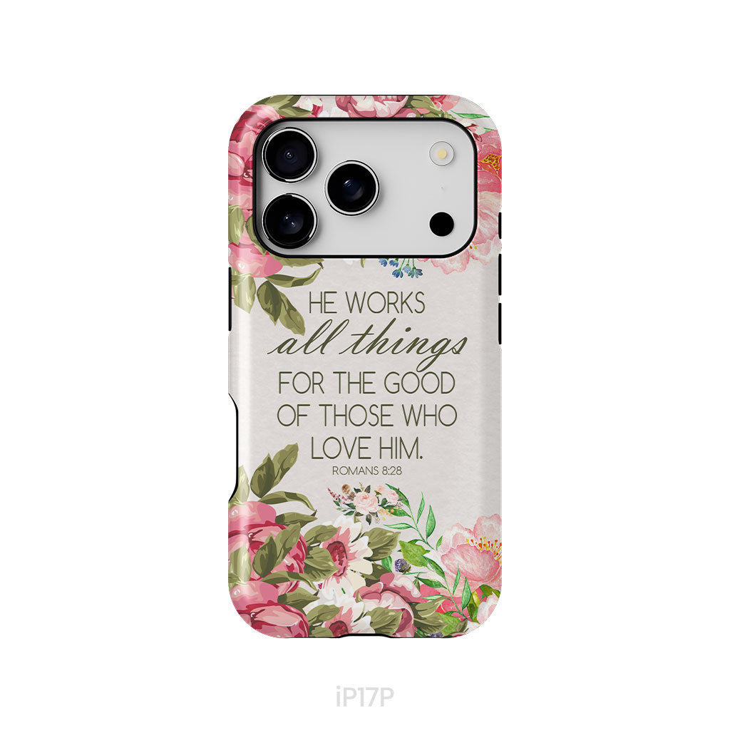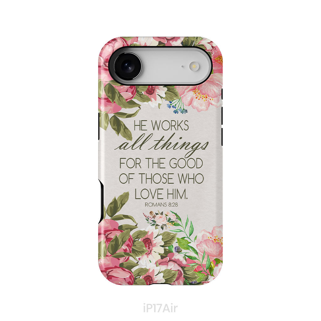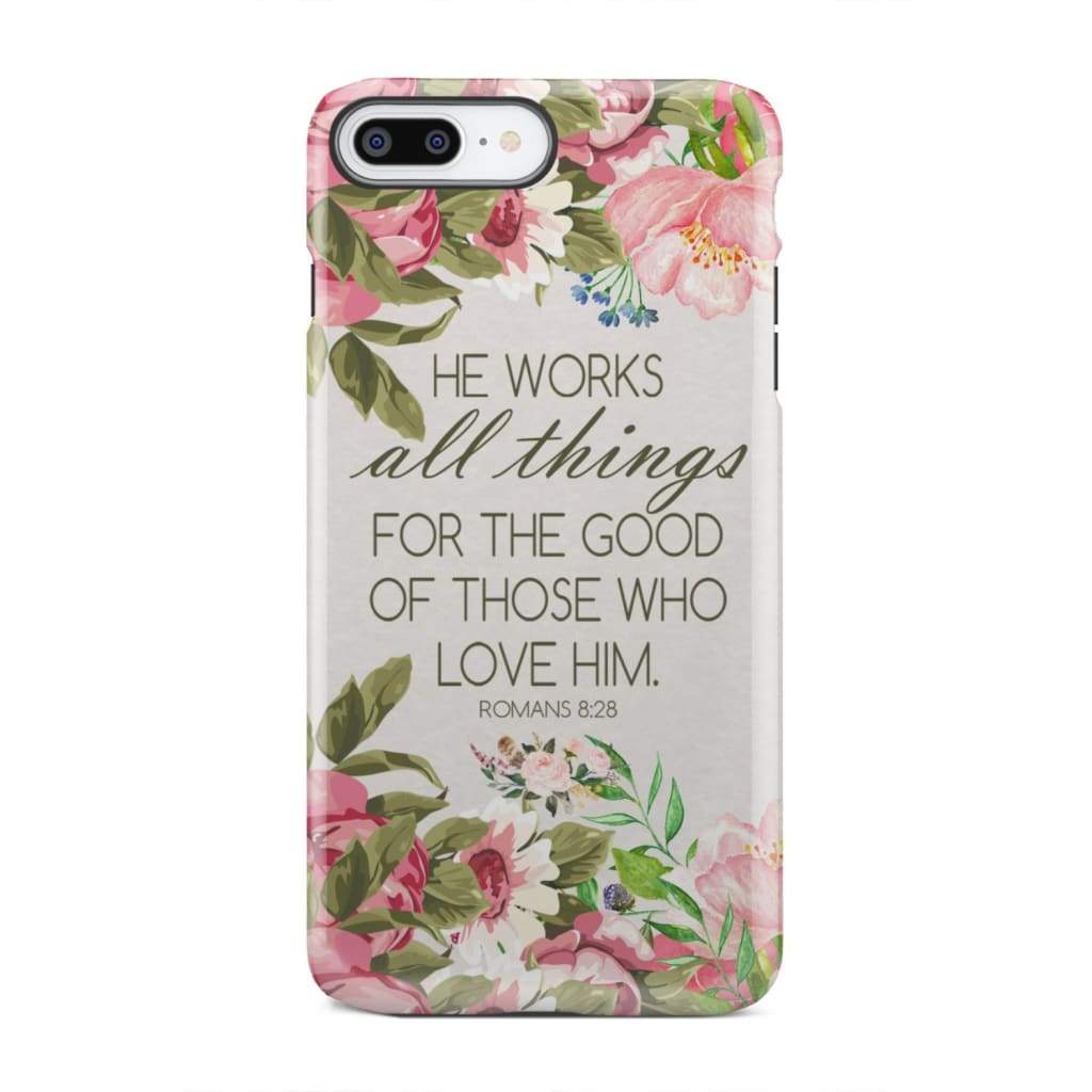 He Works All Things For Good Romans 8:28 Bible Verse Phone Case