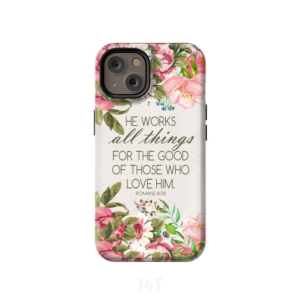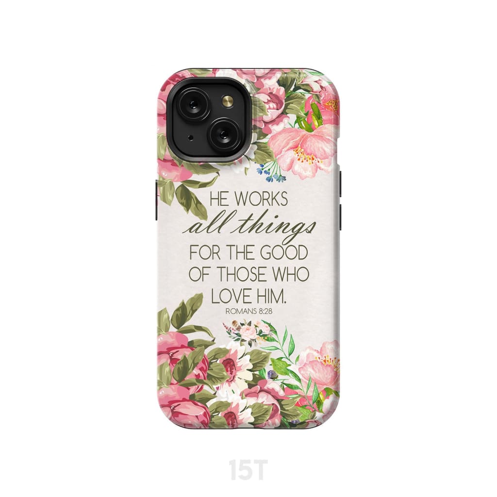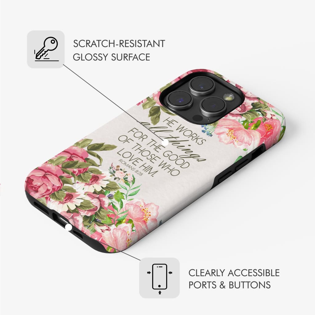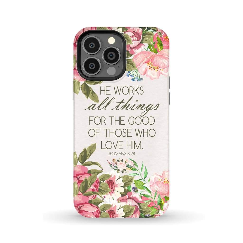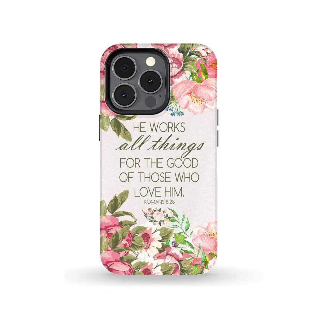 He Works All Things For Good Romans 8:28 Bible Verse Phone Case