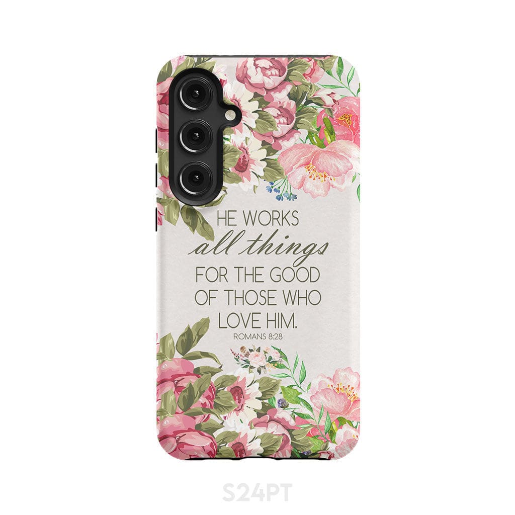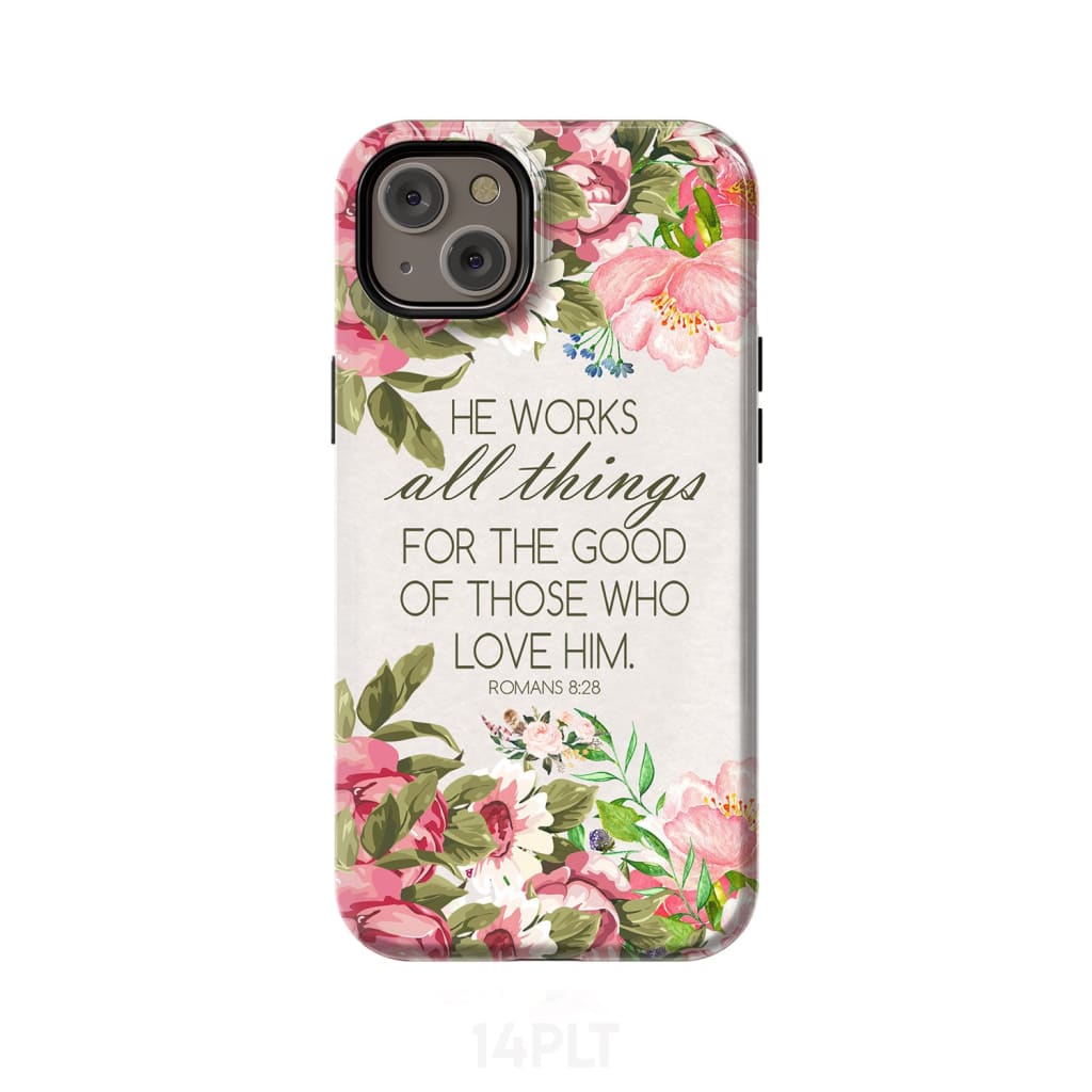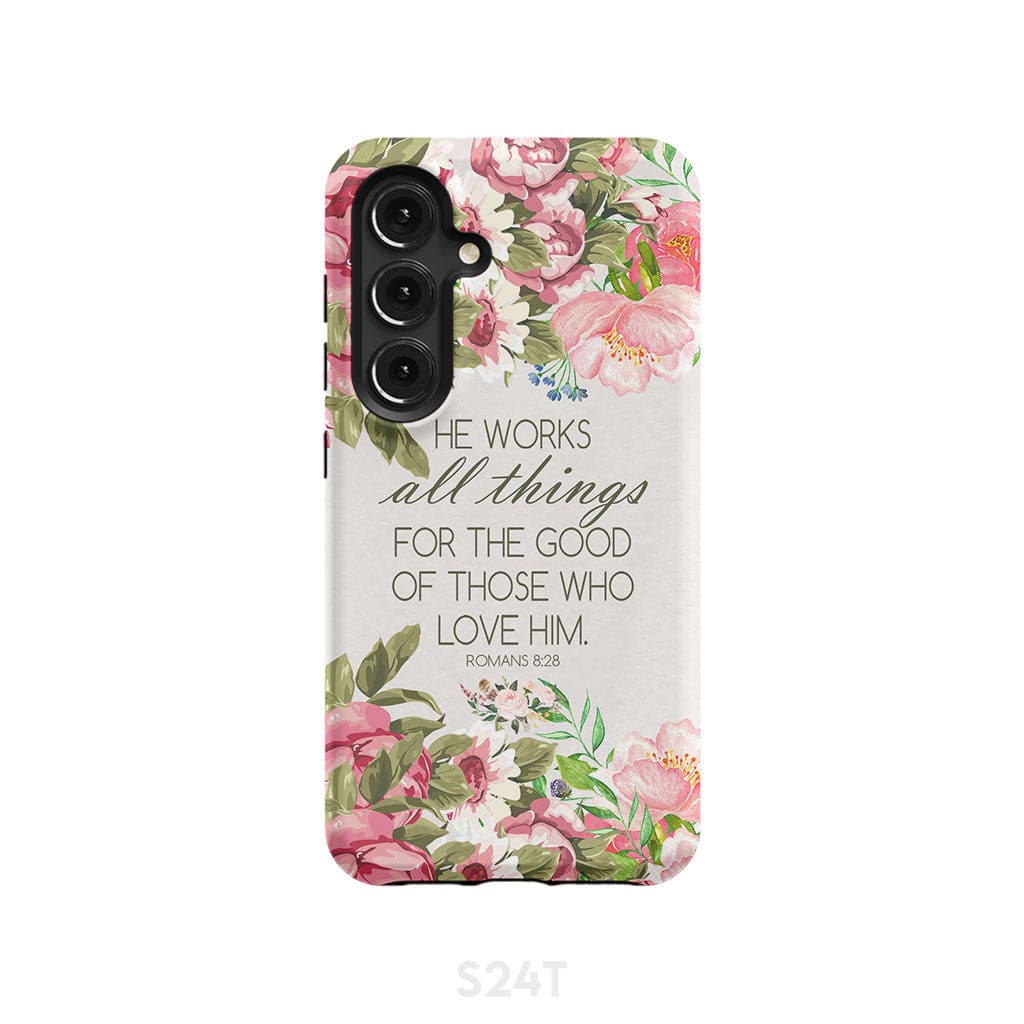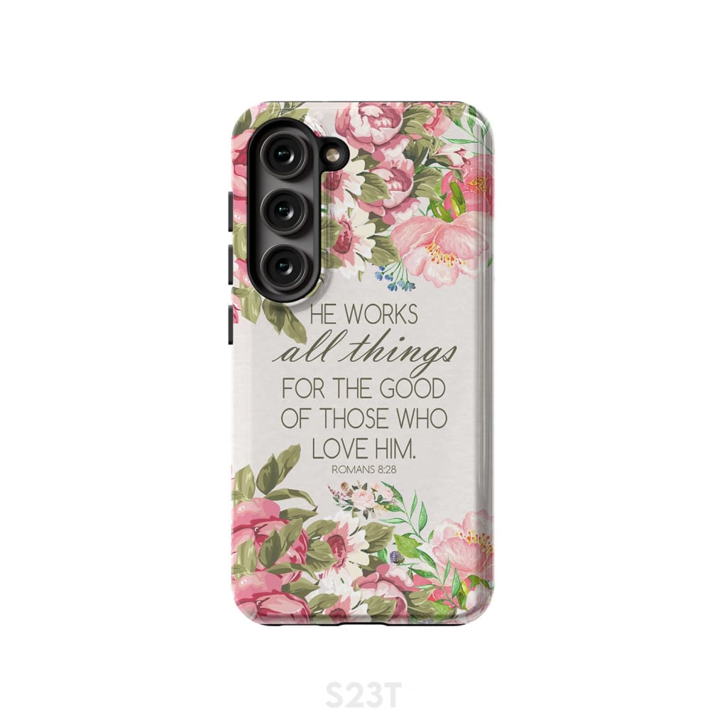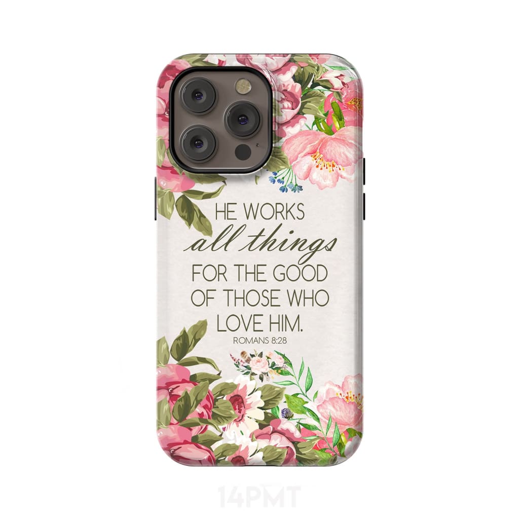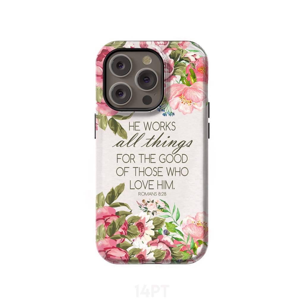 He Works All Things For Good Romans 8:28 Bible Verse Phone Case